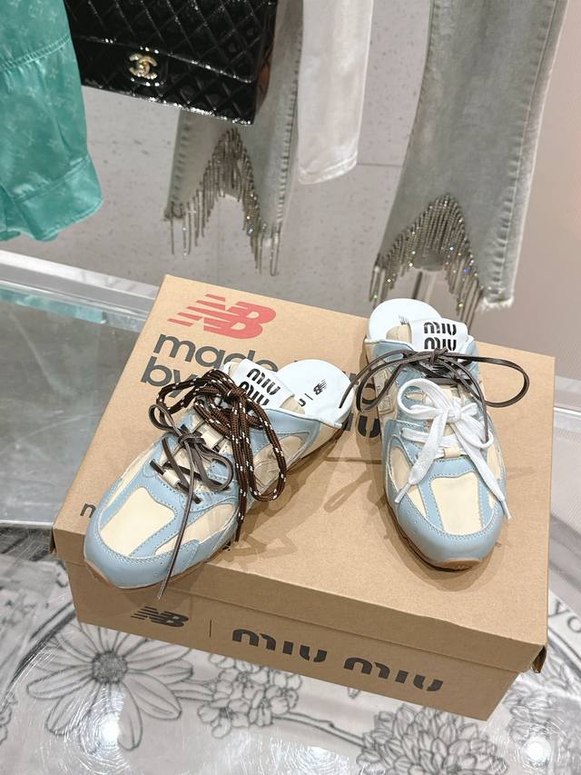 New Balance530缪缪丨纽巴伦联名款最新系列复古运动鞋半拖 原版一致擦色牛皮制作 经典时尚混搭双色鞋带設計 原版开模橡胶防滑耐磨大底 尺码35-40