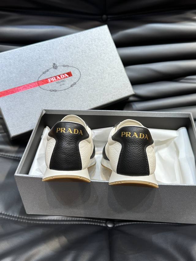 Prad* 普拉达新品男士高端运动鞋,这款运动鞋休闲百搭,选用进口牛皮打造,进口羊皮内里,轻质发泡大底,脚感非常舒适,运用柔和简洁的线条勾勒出运动风廓形。鞋底轻