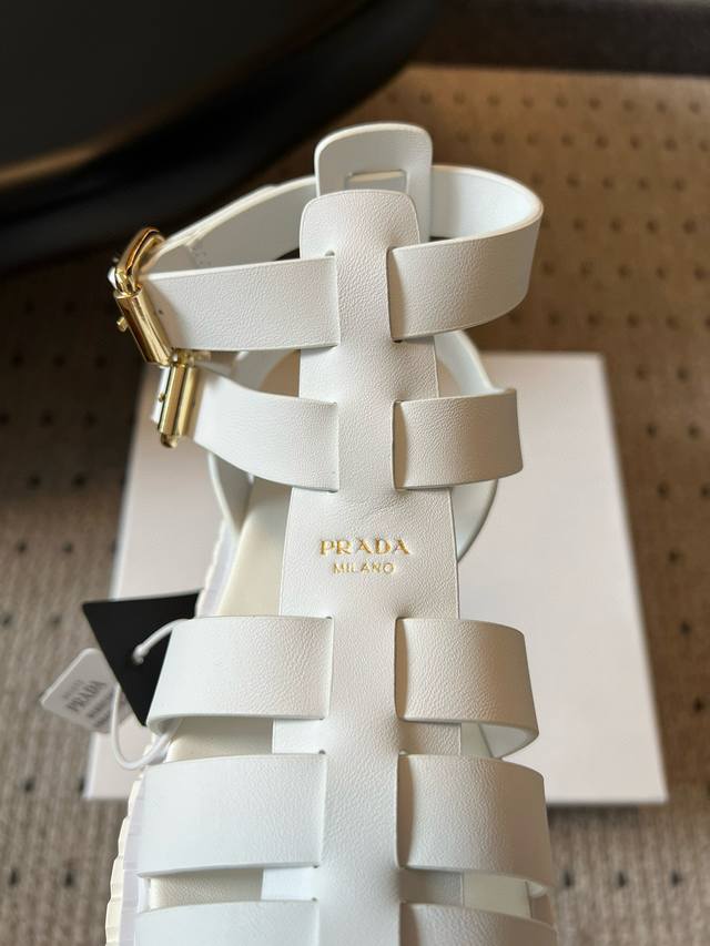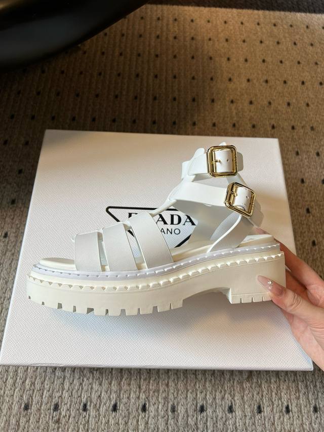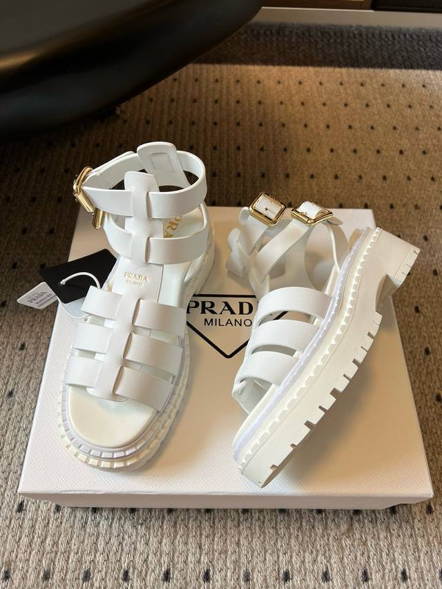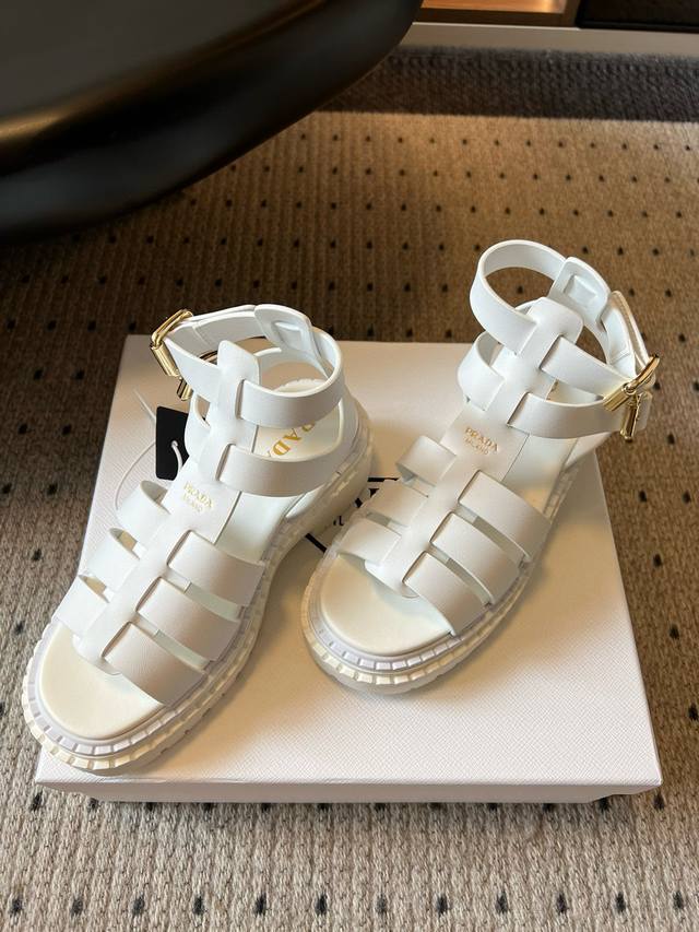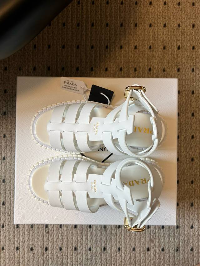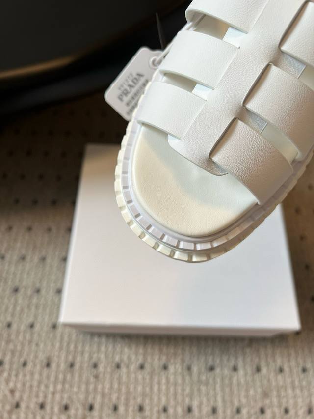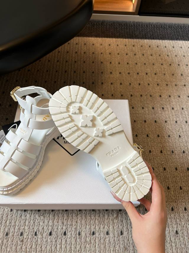 Prad* 普拉达25Ss春夏新款锯齿罗马编织厚底橡胶凉鞋