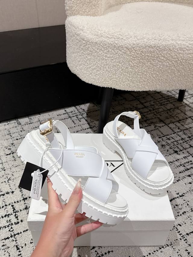 Prada 普拉达 25 最新春夏 厚底 猪笼 罗马 凉鞋