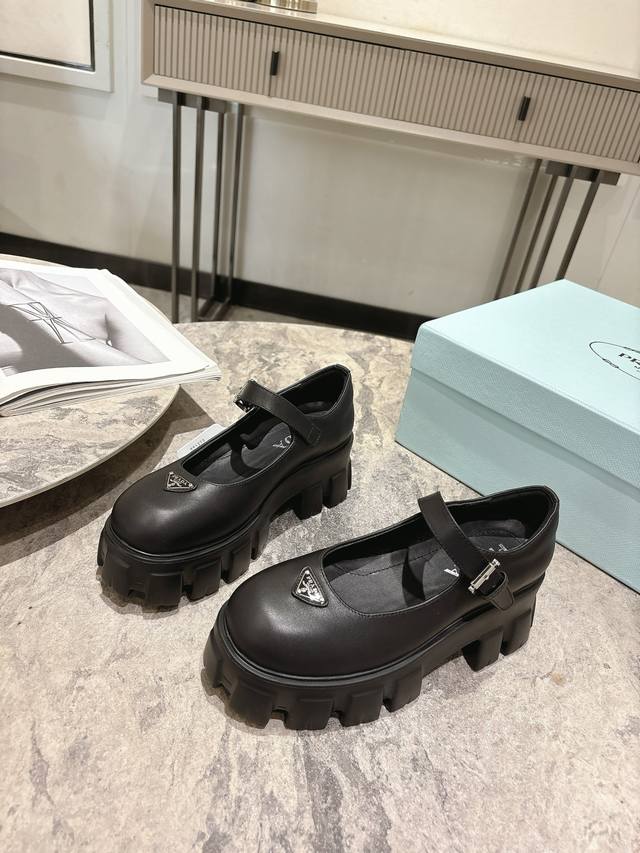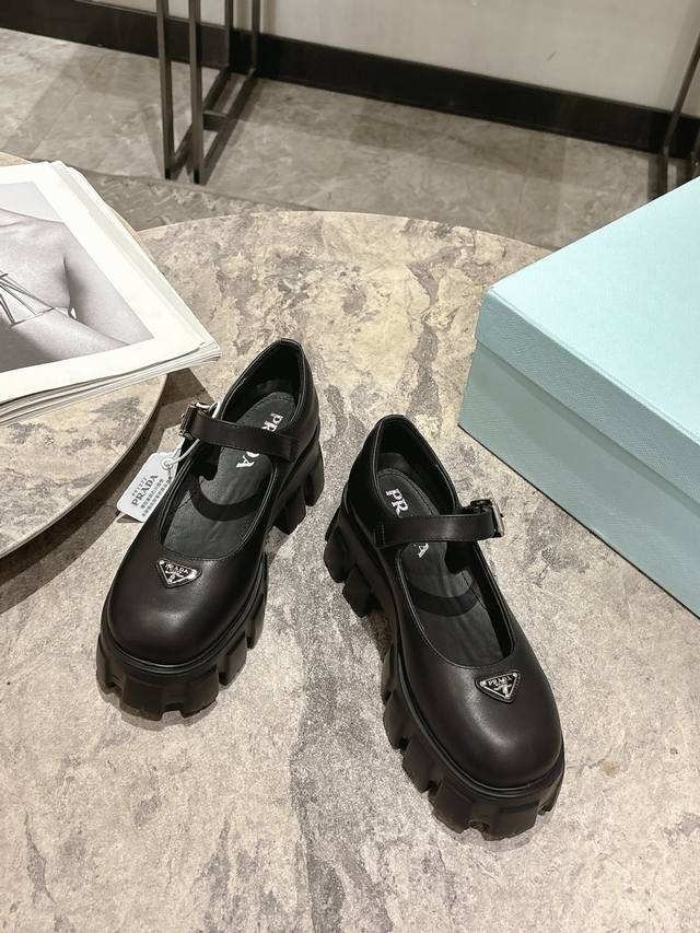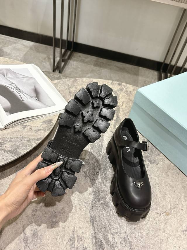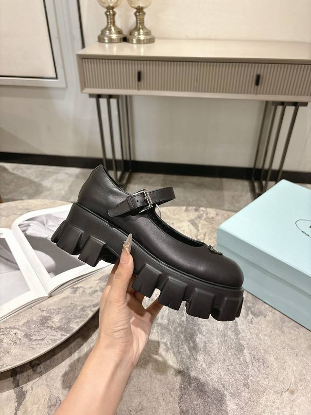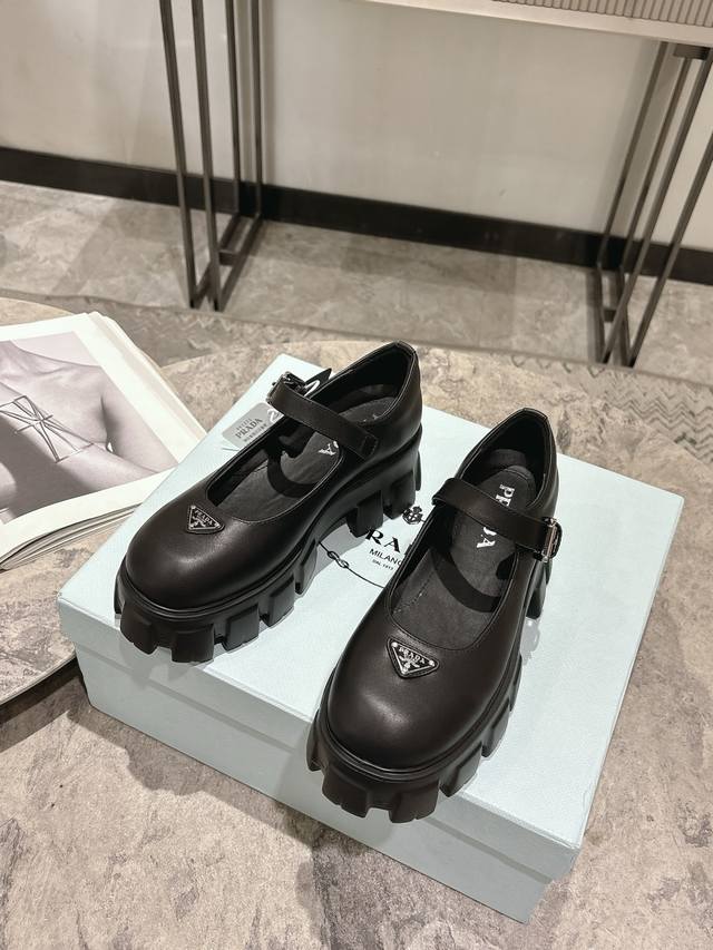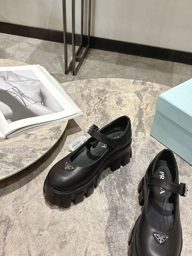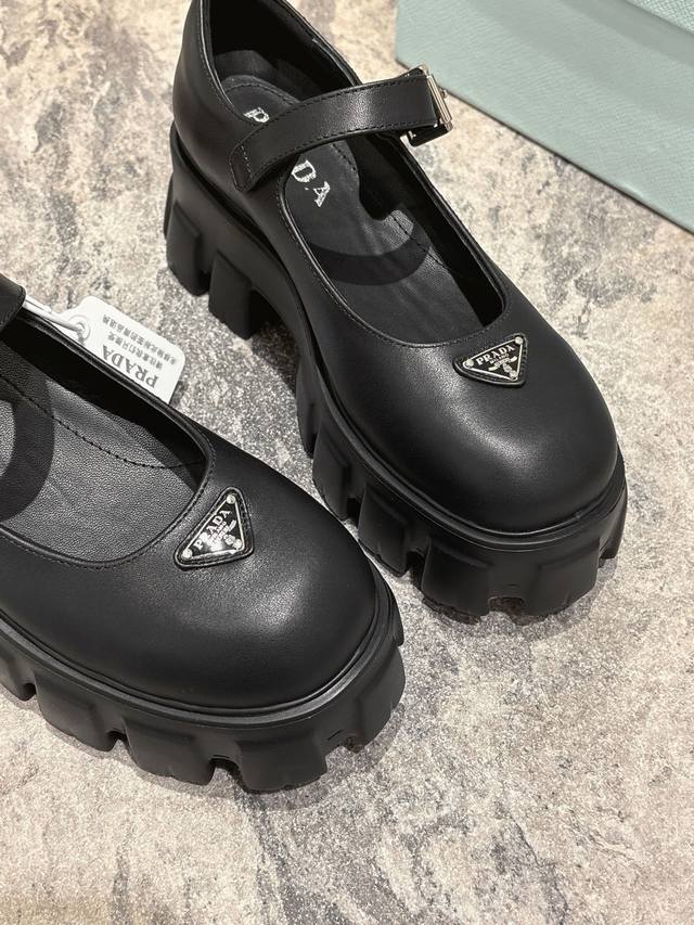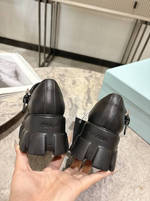 Prada 普拉达 25Fw最新Monolith 玛丽珍鞋 三角扣厚底小皮鞋乐福鞋