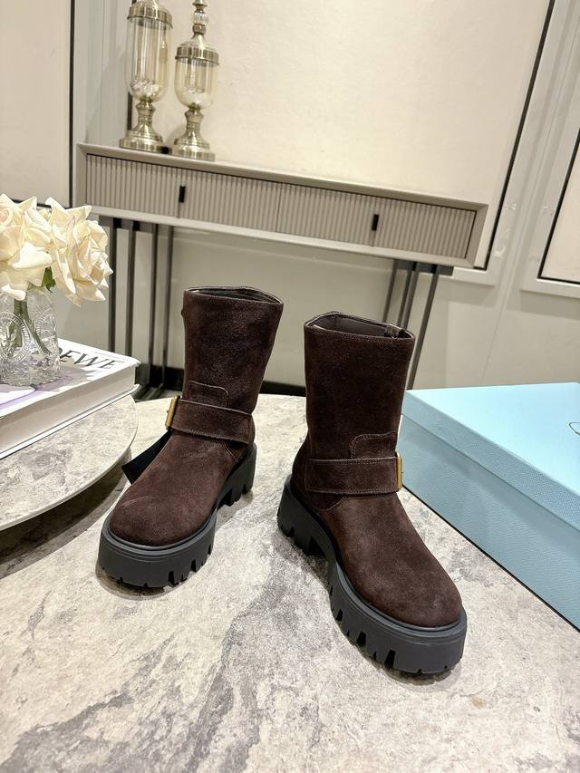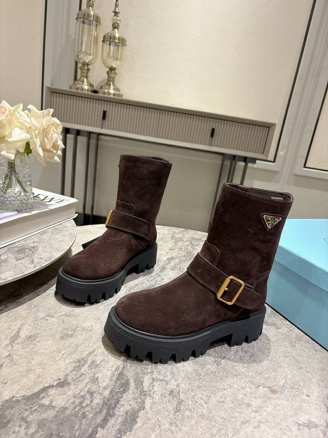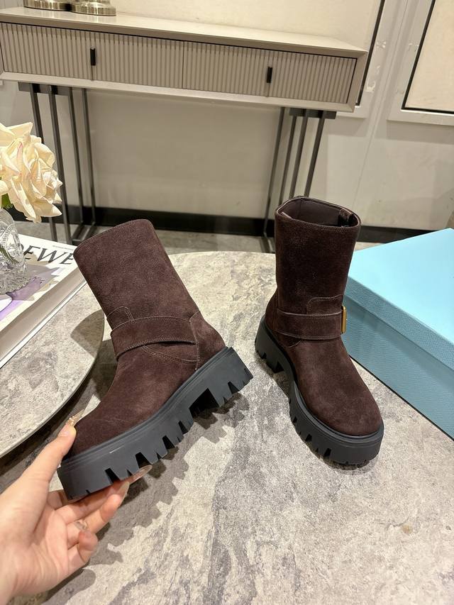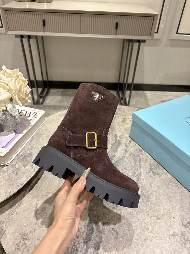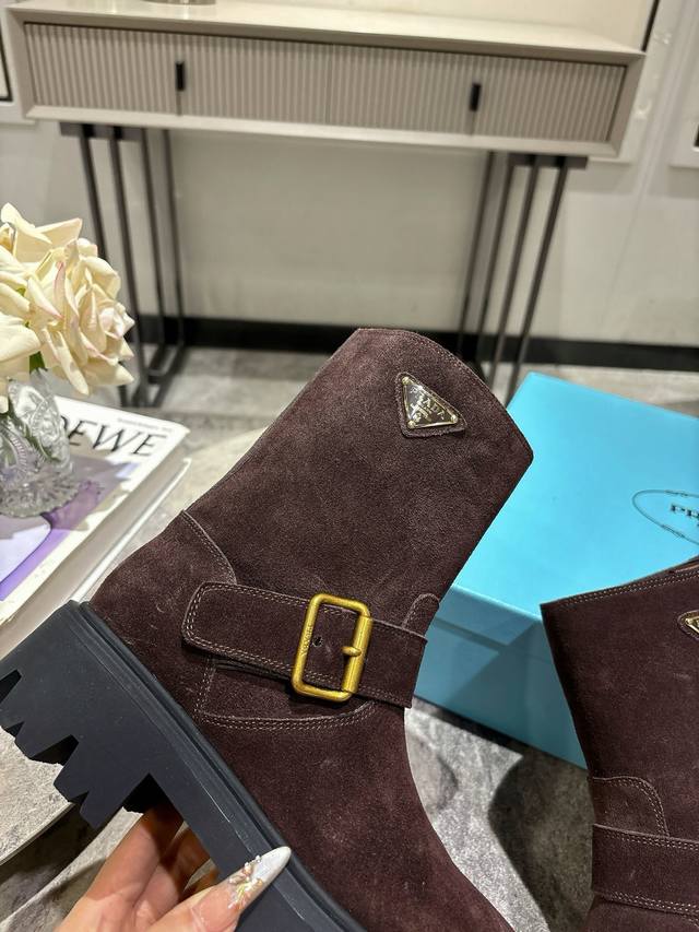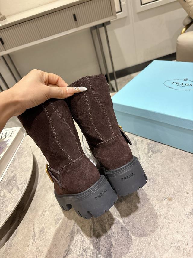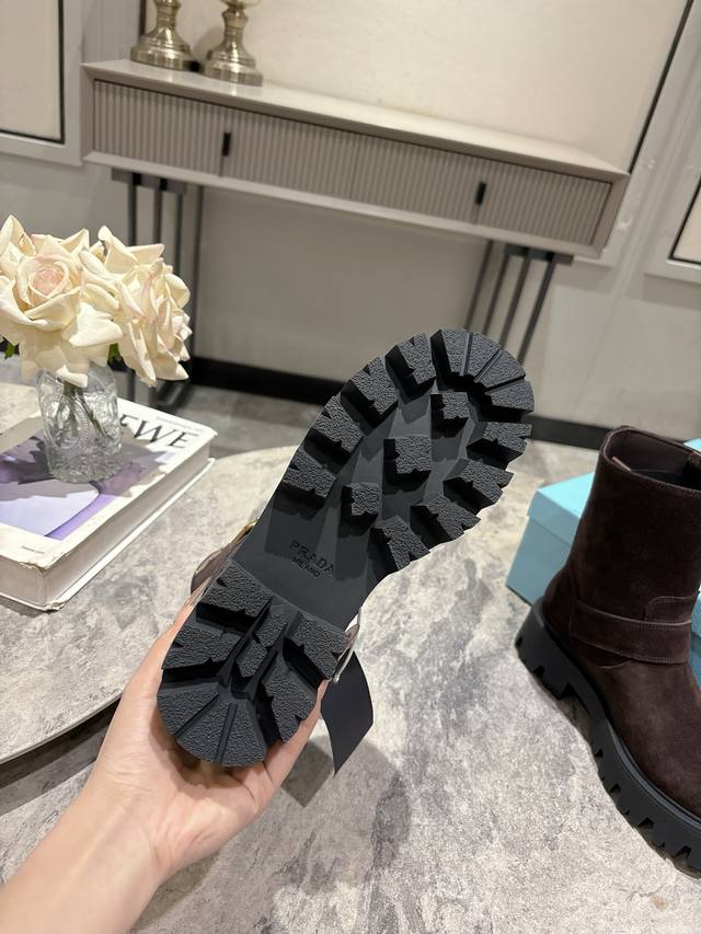 Prada 普拉达 25Ss秋冬新款 经典三角标 一脚蹬 短靴