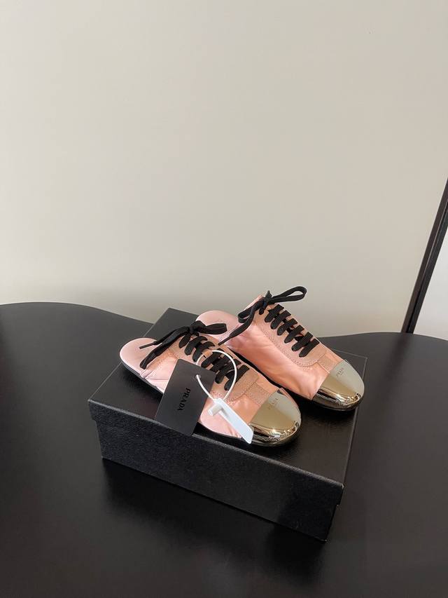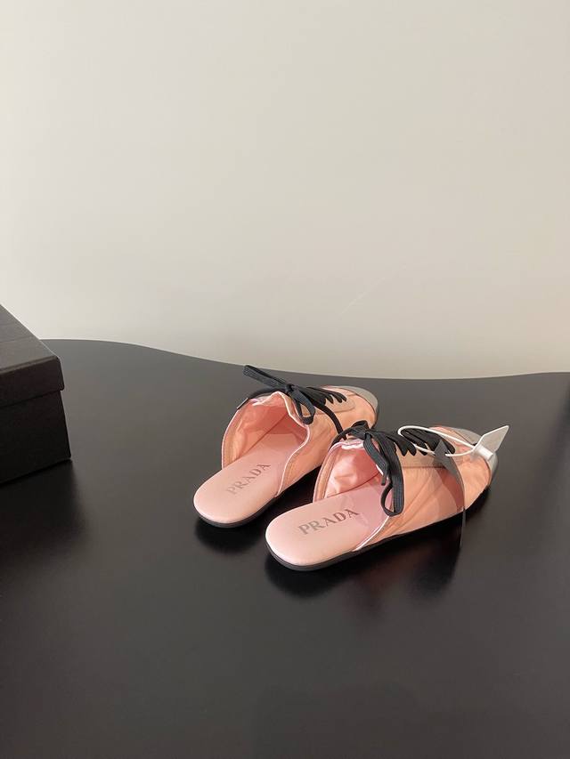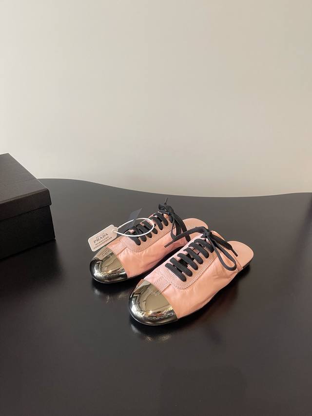 Prada 最新铁头 德训 系带 半拖 单鞋