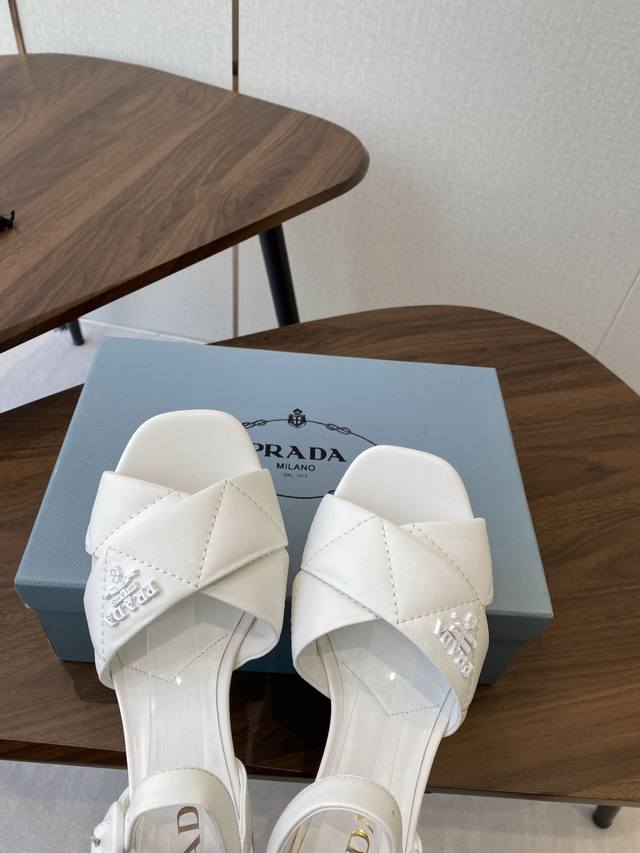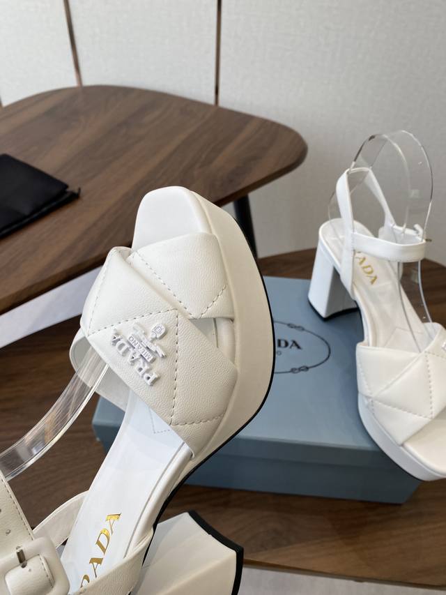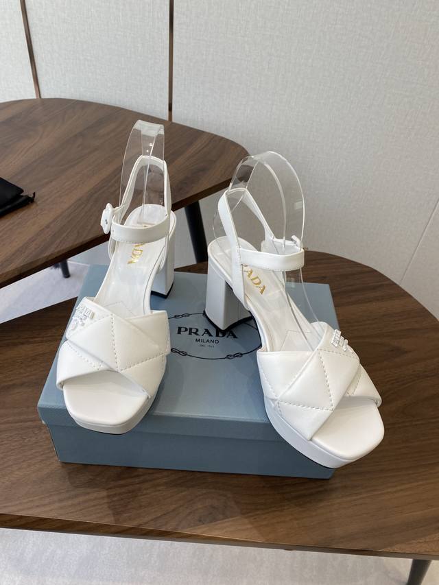 Prada 2025春夏新款 普拉达春夏新款电绣凉鞋系列 罗马厚底凉鞋