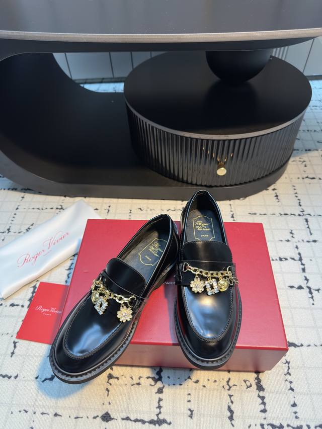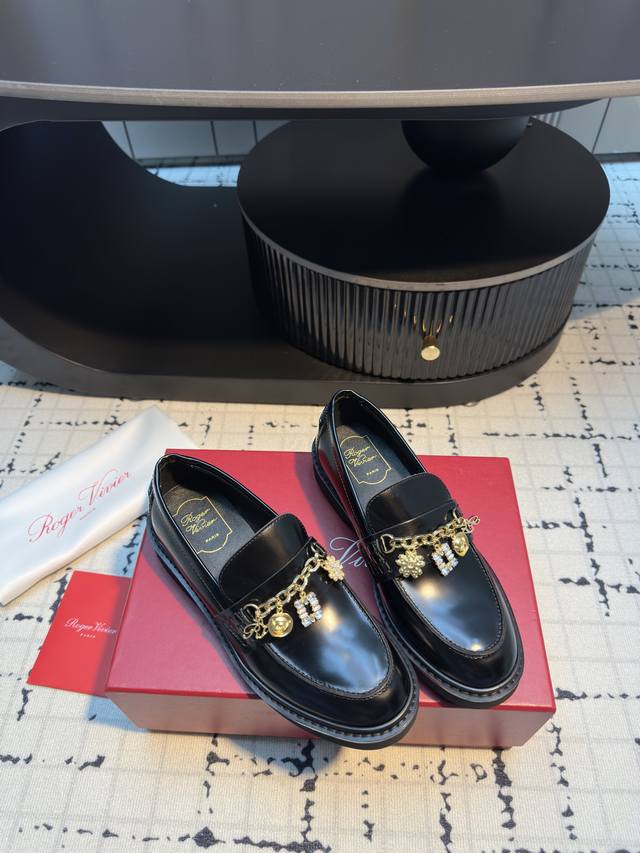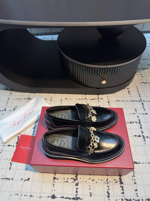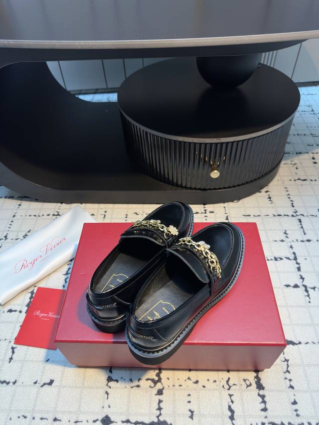 Roger Vivier Rv25Ss新品水钻链条乐福鞋
