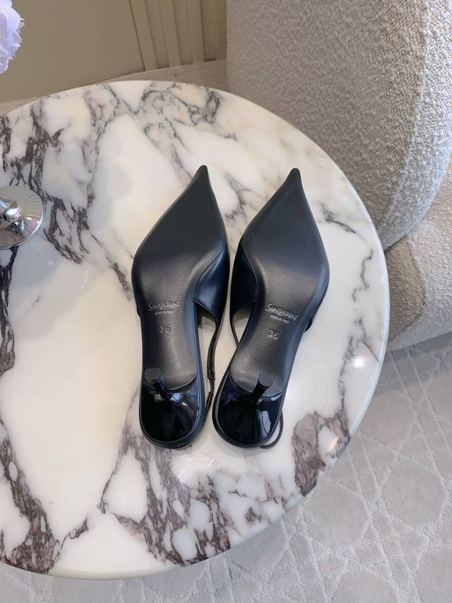 Saint Lauren* Ysl 杨树林新款小猫跟尖头后空鞋 小姐姐的美丽尤物高跟鞋 优雅迷人性感 女人味十足 鞋面小牛皮 内里垫脚羊皮 意大利真皮大底 跟高