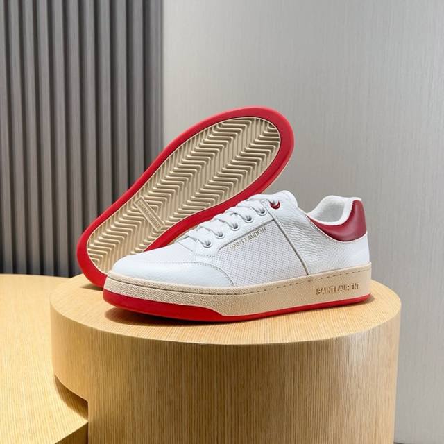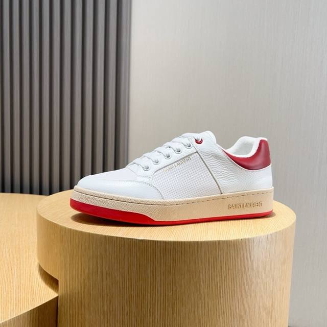 Saint Laurent 圣罗兰 Sl61春夏最新爆款休闲系列 原版购入 ,新鲜血液注入加休闲复古的设计,超好看百搭,鞋面采用牛皮冲孔拼接组合,侧面烫金标识性Logo,无中底套楦做法、加记忆脚床鞋垫!脚感更加无比舒适轻便 、环保防滑橡胶双色大底、大底周圈车真线 更加增强了整双鞋子的舒适度 牢固度 完美用细节说话 !