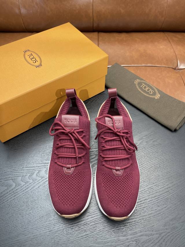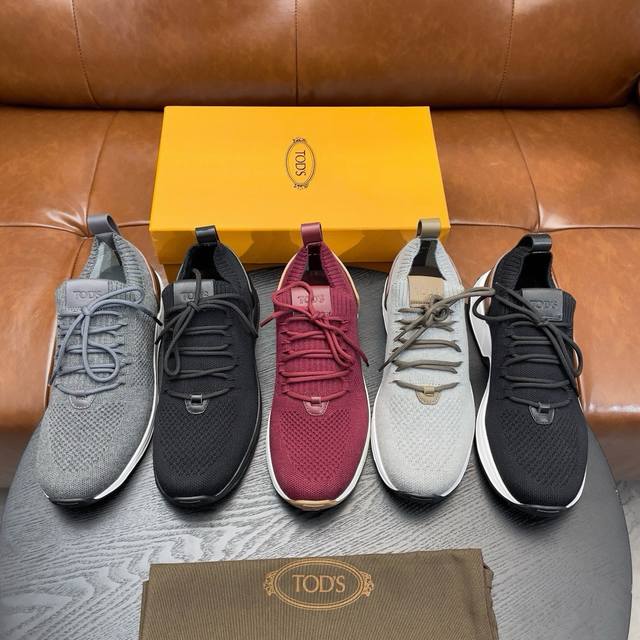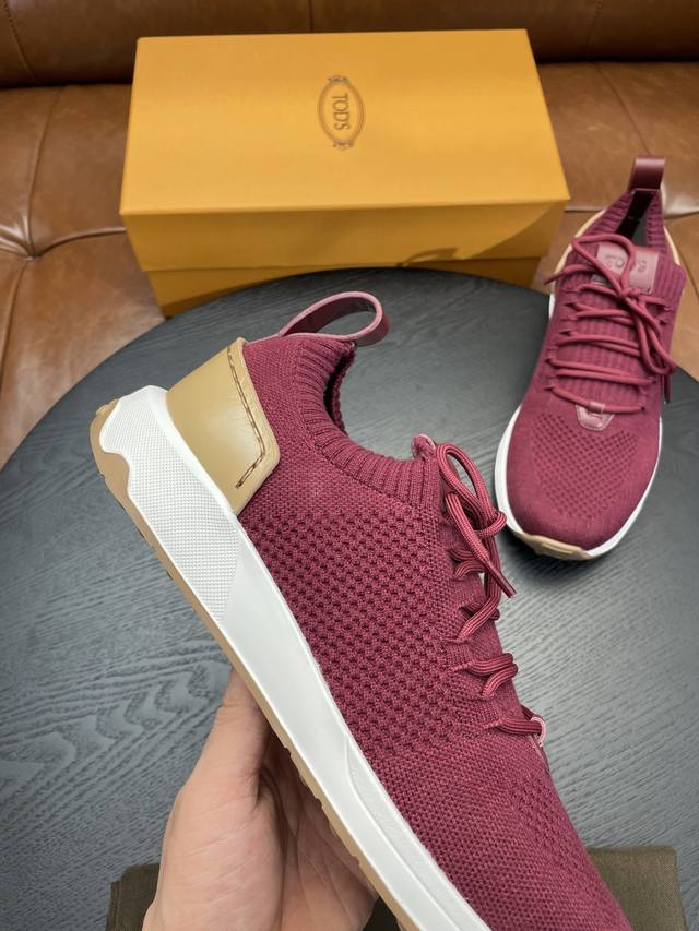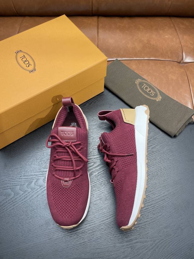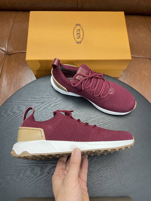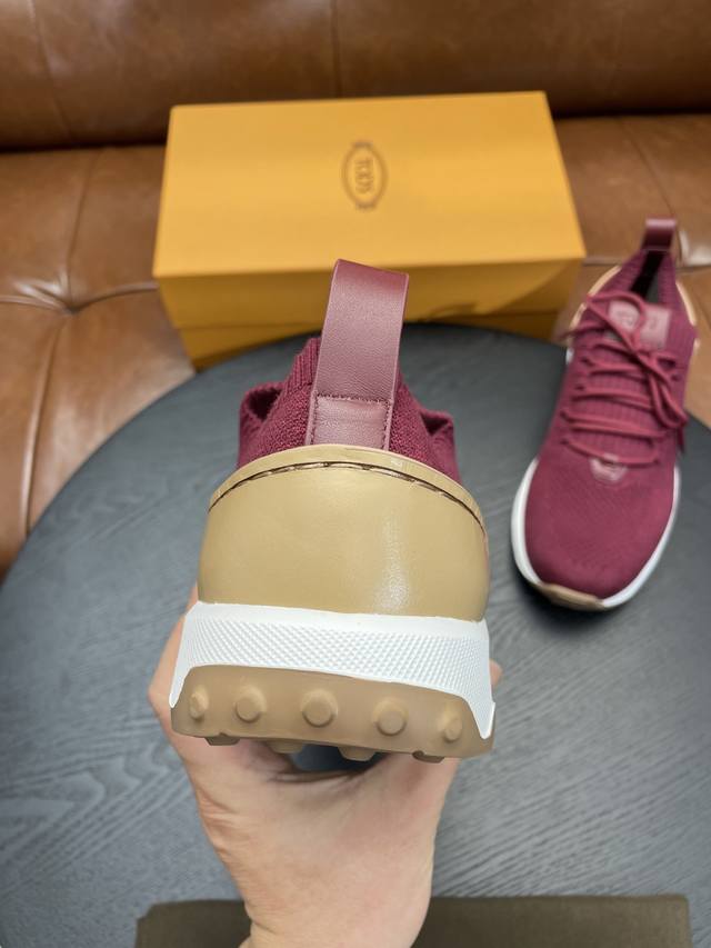 Tods本款运动飞织面料休闲鞋在跑步鞋基础上增添都市时尚元素,糅合运动风和Tod's传统设计。以科技织物拼小牛皮制成,轻便的橡胶外底设有大小不一的橡胶豆豆,符合人体工程学设计,脚感舒适。袜靴式运动休闲鞋,科技织物鞋,拼缝小牛皮,皮革内底,点缀橡胶豆豆的Eva外底,舒适透气轻便。