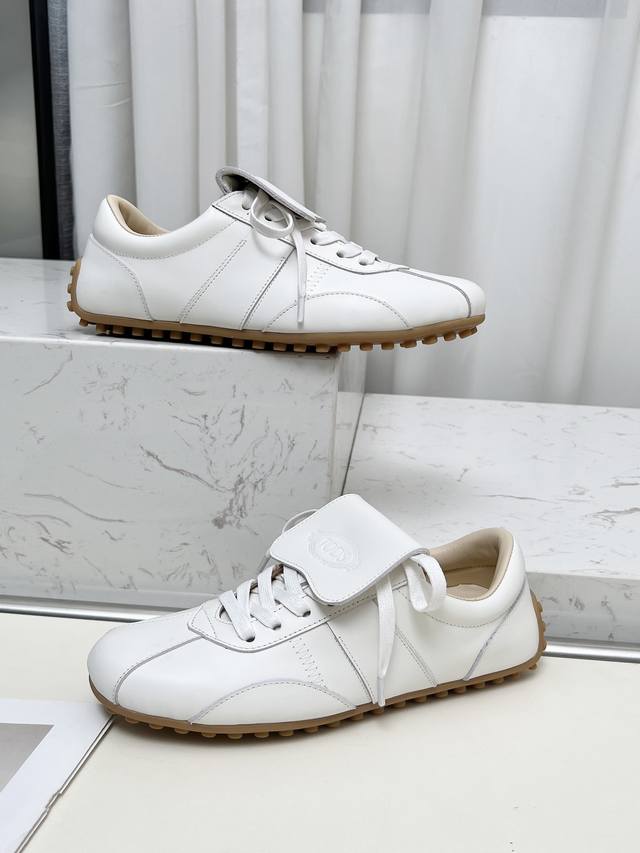 / Tod's T-Marathon 系列运动休闲鞋从室内足球运动汲取灵感,复古风鞋面以柔软的纳帕皮革制成,加大鞋舌可以拆卸,缝线点缀的鞋底延伸至后跟,点缀特别的橡