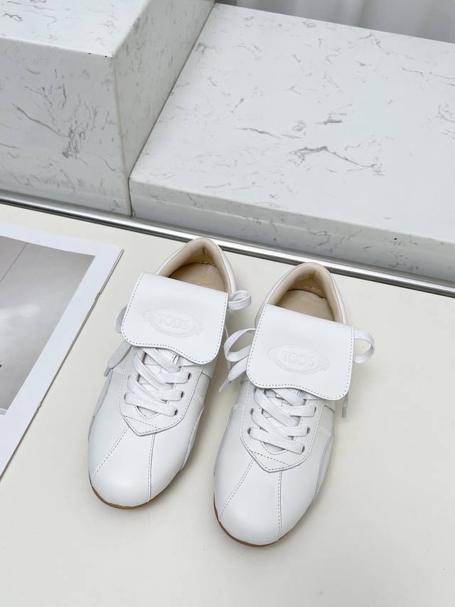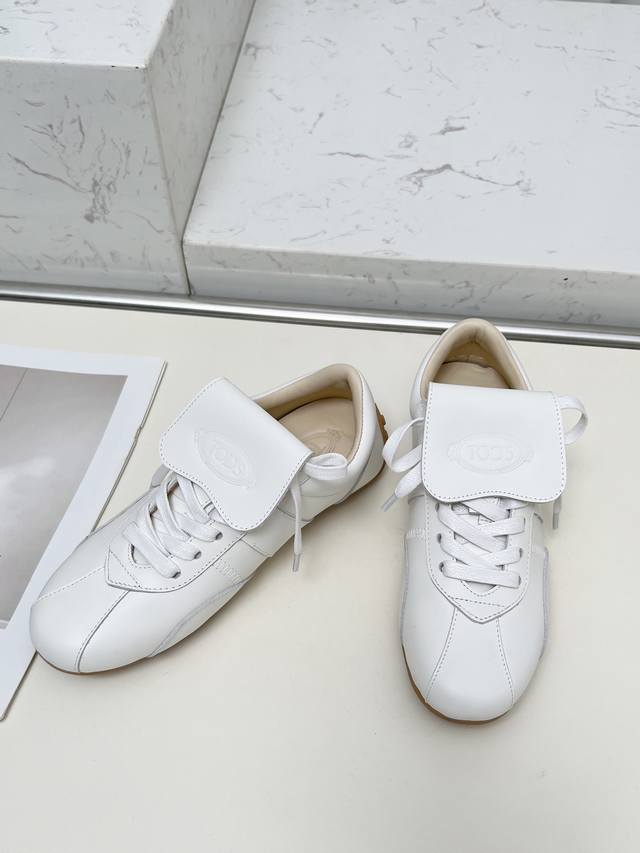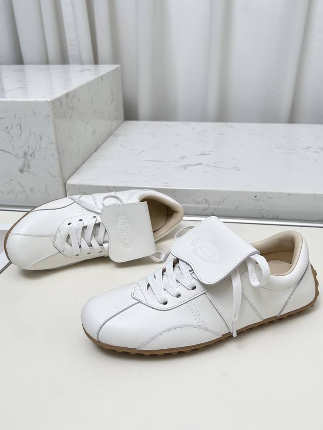 Tod's T-Marathon 系列运动休闲鞋从室内足球运动汲取灵感,复古风鞋面以柔软的纳帕皮革制成,加大鞋舌可以拆卸,缝线点缀的鞋底延伸至后跟,点缀特别的橡胶豆豆。轻便舒适,做工精致,尽显休闲松弛态度。码数35到41 40、41定做不退换 。 厂价P: