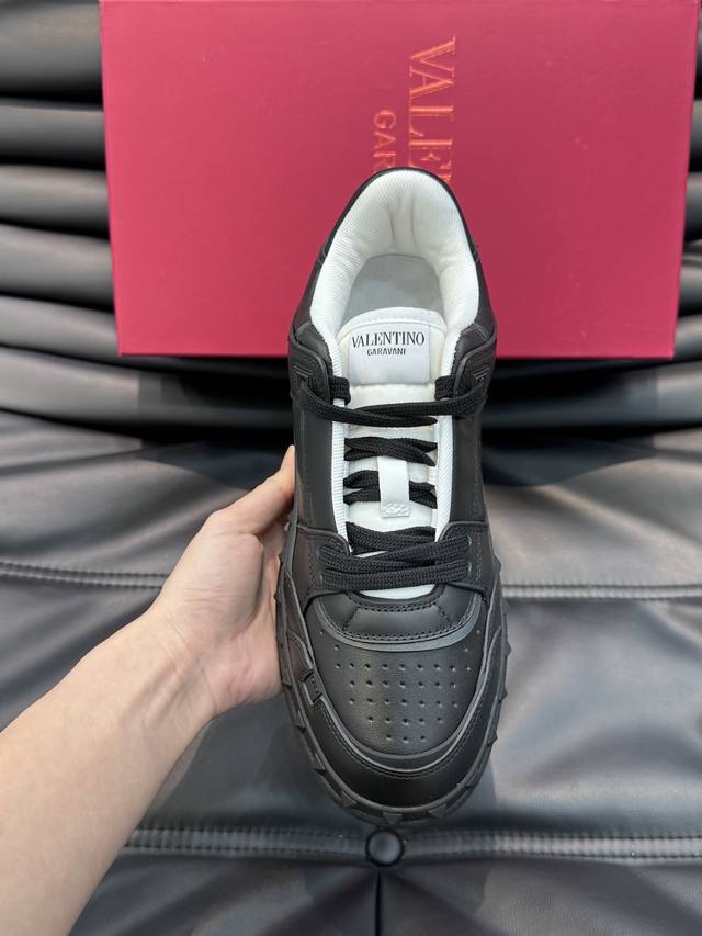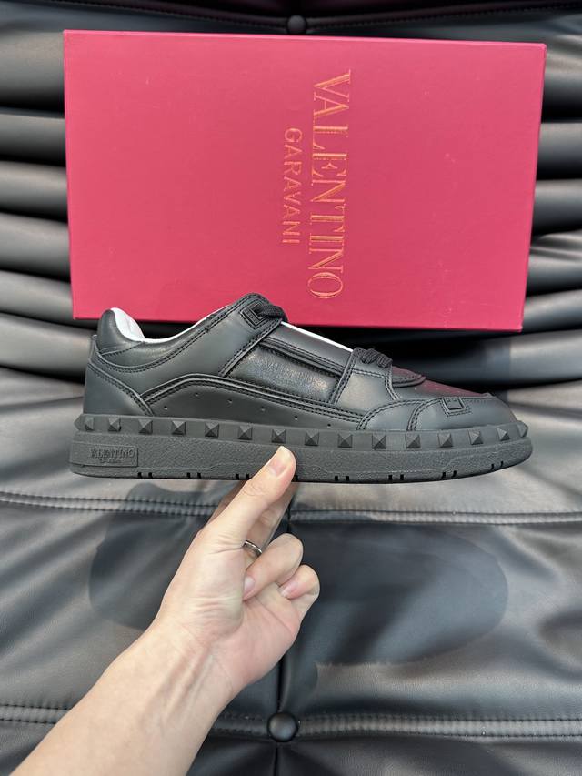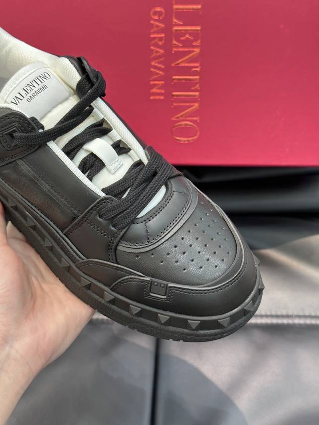 Valentin* 华伦低帮小牛皮运动鞋 - 小牛皮材质打造 -经典铆钉装饰鞋面 - 橡胶鞋底,装饰浅浮雕式铆钉细节 - 高端品质 - Size:38-45