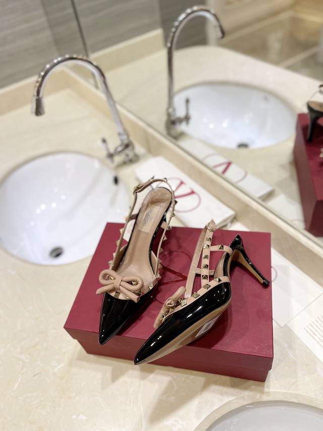 Valentino新款华伦Rockstud铆钉蝴蝶结高跟凉鞋,又一完美的设计尤其是蝴蝶结完全1:1完美复刻 皮蝴蝶结 也是点睛之笔,上脚尽显优雅气质♀♀♀♀♀