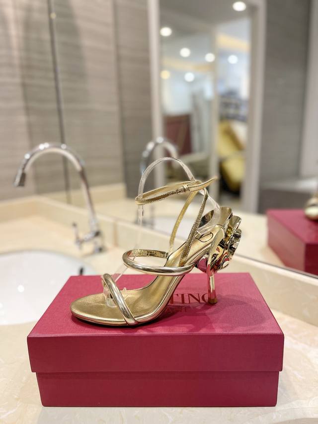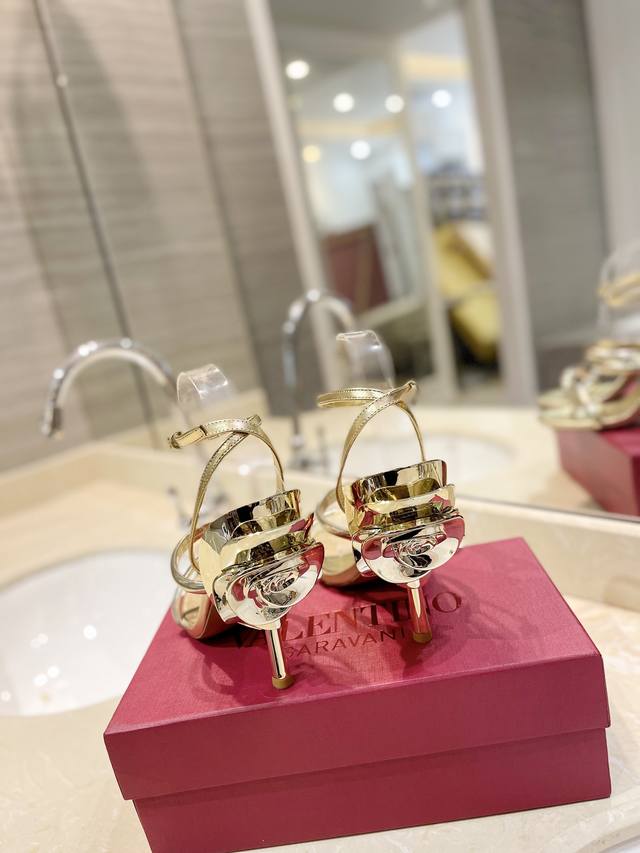 Valentino 新款 最新玫瑰花跟 突破设计风格 无法描述的美丽 材质面料牛皮 内里采用高级柔软羊皮舒适驾驭。鞋底意大利真皮鞋底 鞋跟10Cm 码数35-3