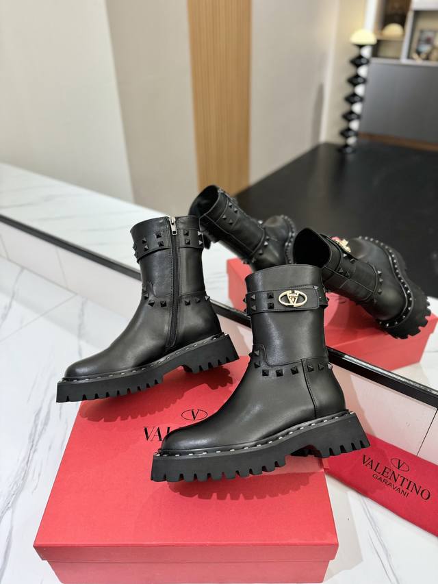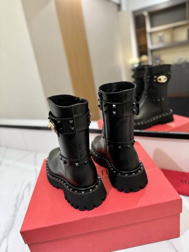 Valentino Garavanivl -V专柜最新款骑士战靴外侧V扣锁版面设计-内侧拉链开合 顶级版本绝对史上最强货 舒适好穿楦型与专柜一致,优雅气质、