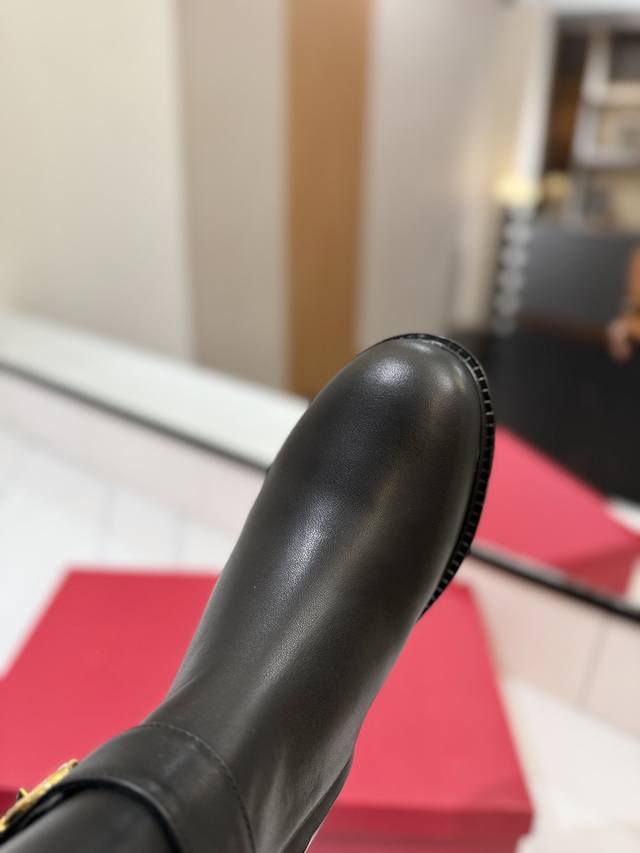 Valentino Garavanivl -V专柜最新款骑士战靴外侧V扣锁版面设计-内侧拉链开合 顶级版本绝对史上最强货 舒适好穿楦型与专柜一致,优雅气质、