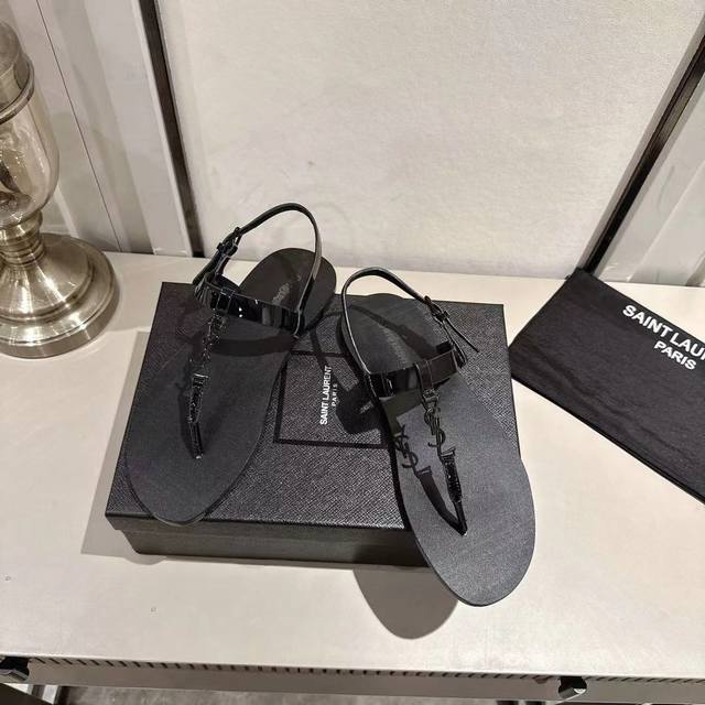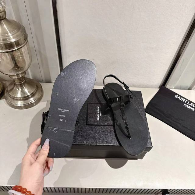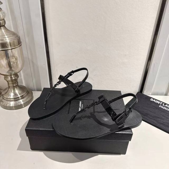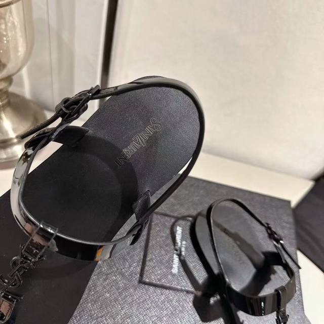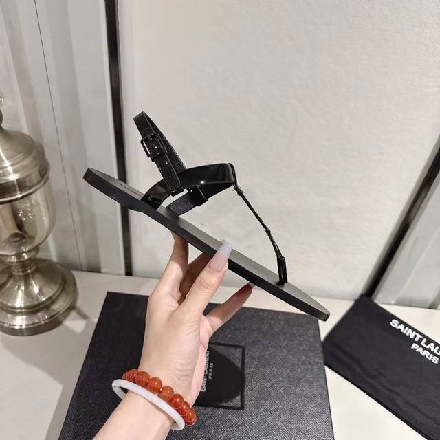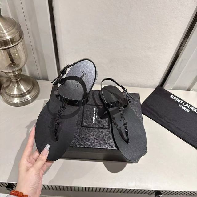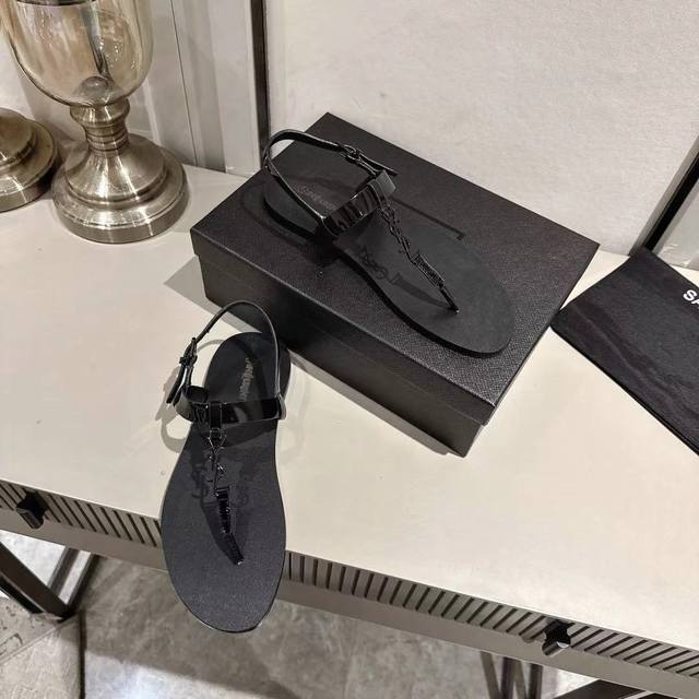 Ysl夹趾凉鞋2025新版 黑色漆皮 码数35-44 35.43.44订做 橡胶大底 真皮大底