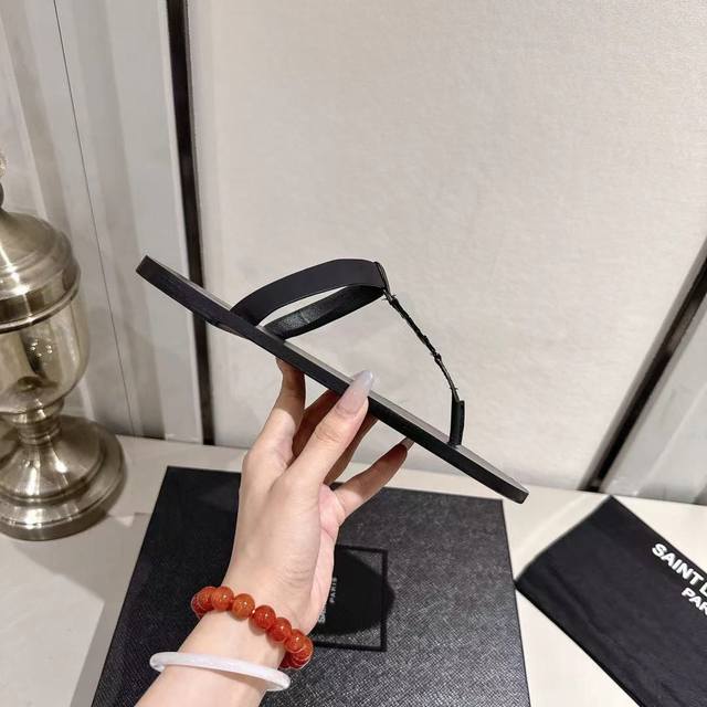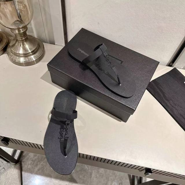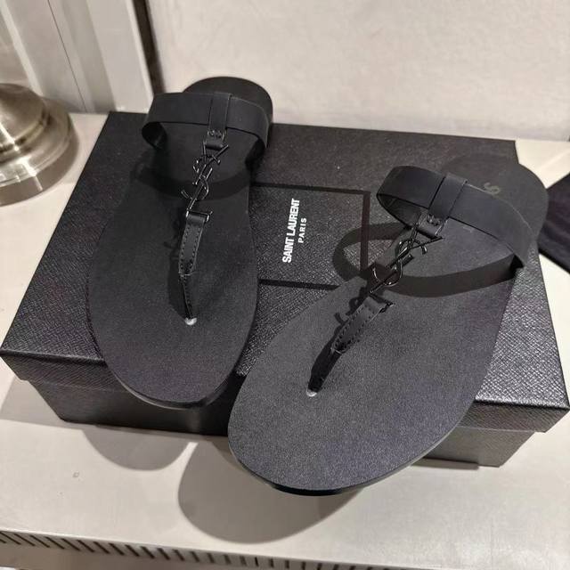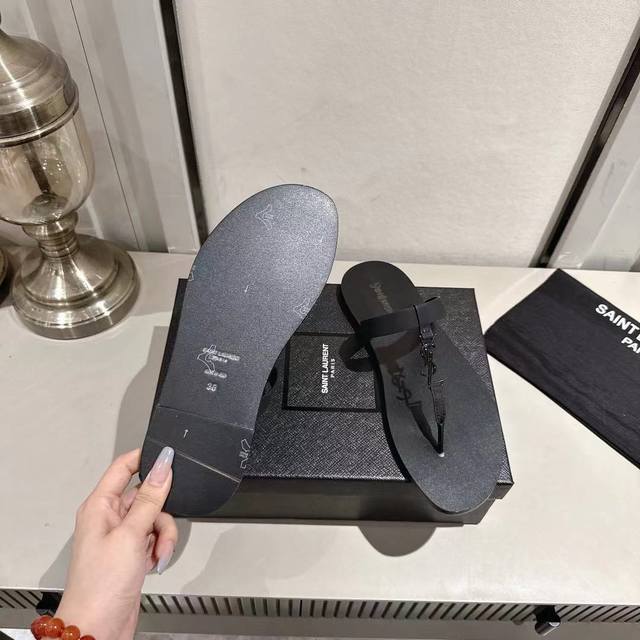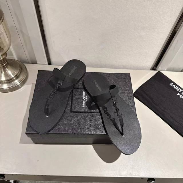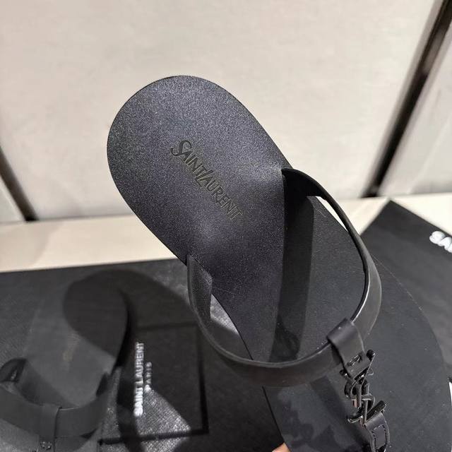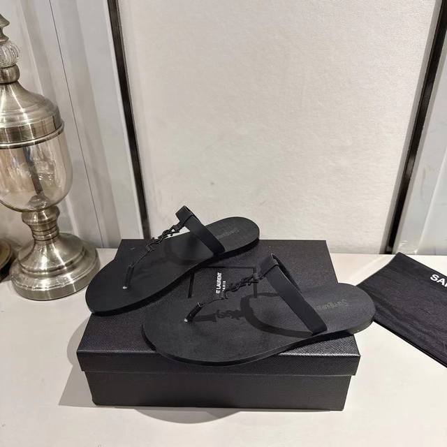 Ysl夹趾拖鞋2025新版 黑色丝绸牛皮 码数35-44 35.43.44订做 橡胶大底 真皮大底
