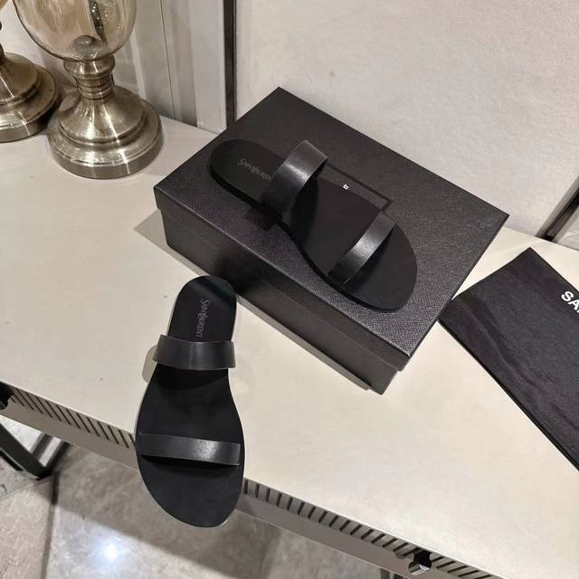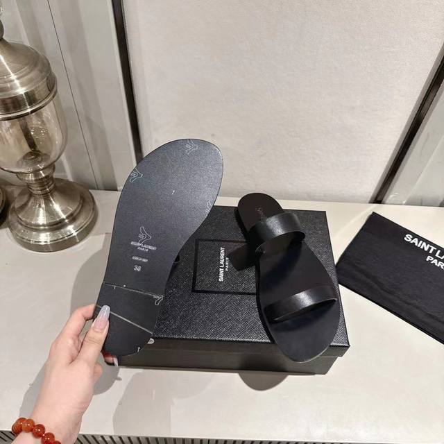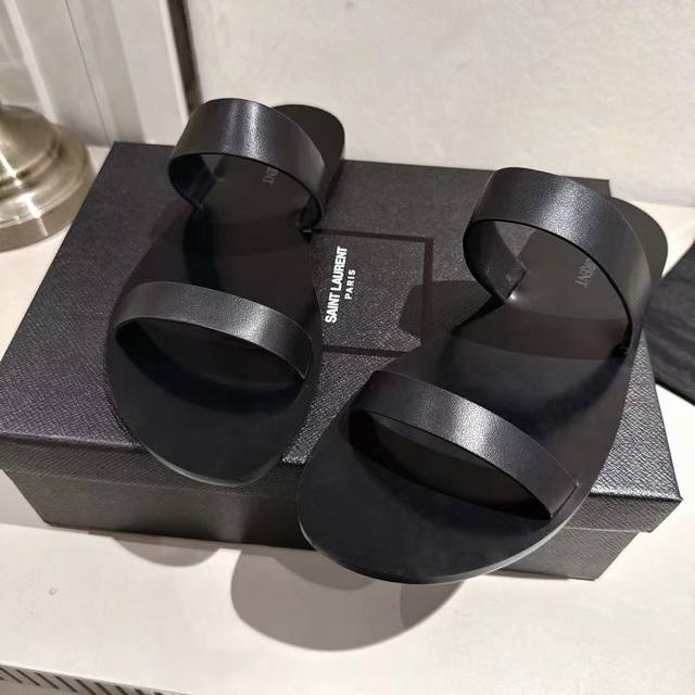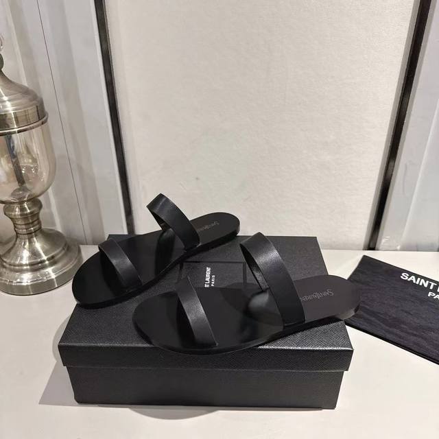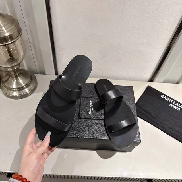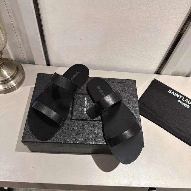 Ysl拖鞋2025新版 黑色牛皮 码数35-44 35.43.44订做 橡胶大底 真皮大底