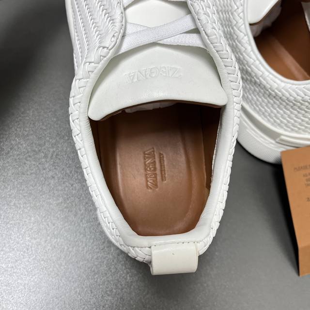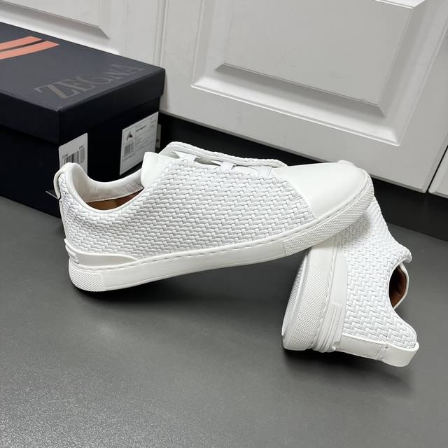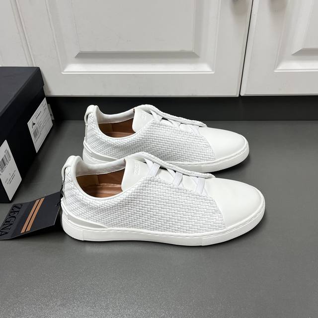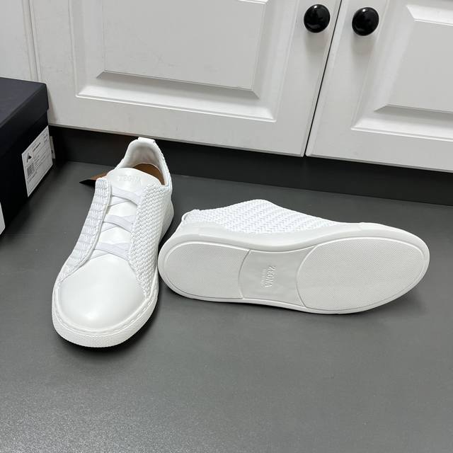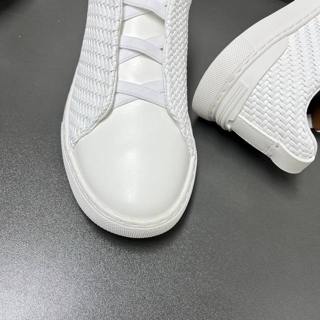 Zegna原单杰尼亚编织男鞋,Triple Stitch 运动鞋是杰尼亚的象征性鞋履风格之一。饰有标志性三重交叉松紧细节,不但便于穿脱,而且让精裁手缝线迹更引人瞩目。这款鞋选用黑色纳帕羊皮和光滑小牛皮编织的Pelletessuta材料制成,非常轻盈的橡胶外底运动细节,以超轻结构重新诠释标志性鞋款。配全套 升级最新包装