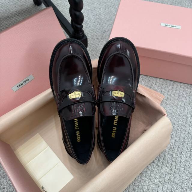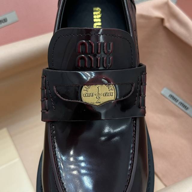 Miumiu新款厚底金币乐福,这一款也太美了吧无敌搭配怎么穿都超级好看 钱币的设计很复古很时尚!
