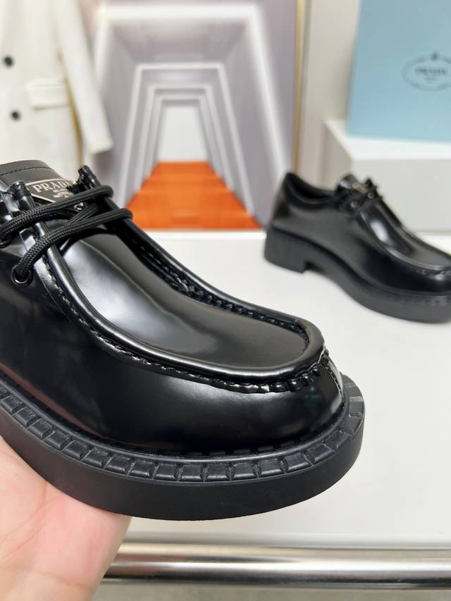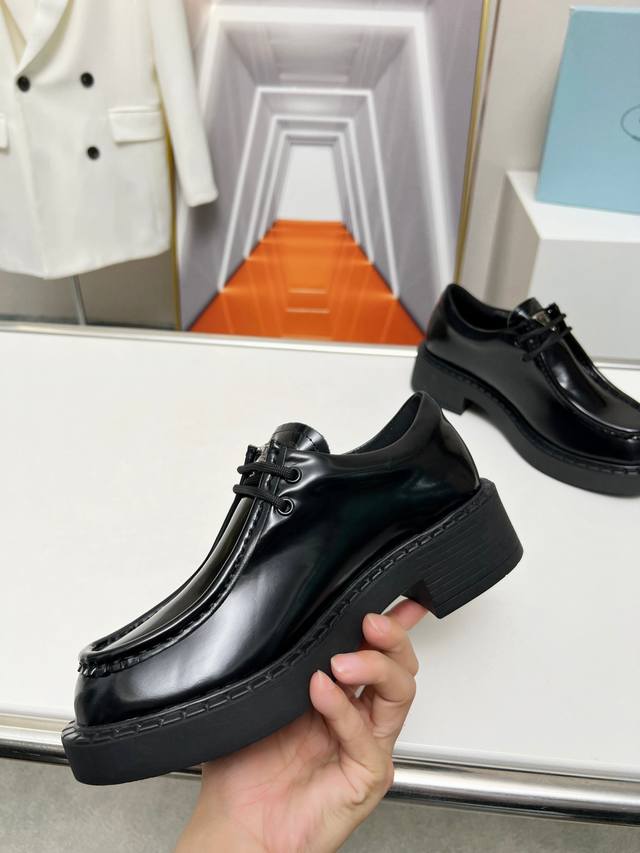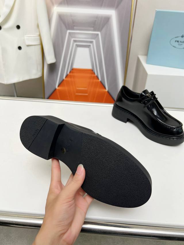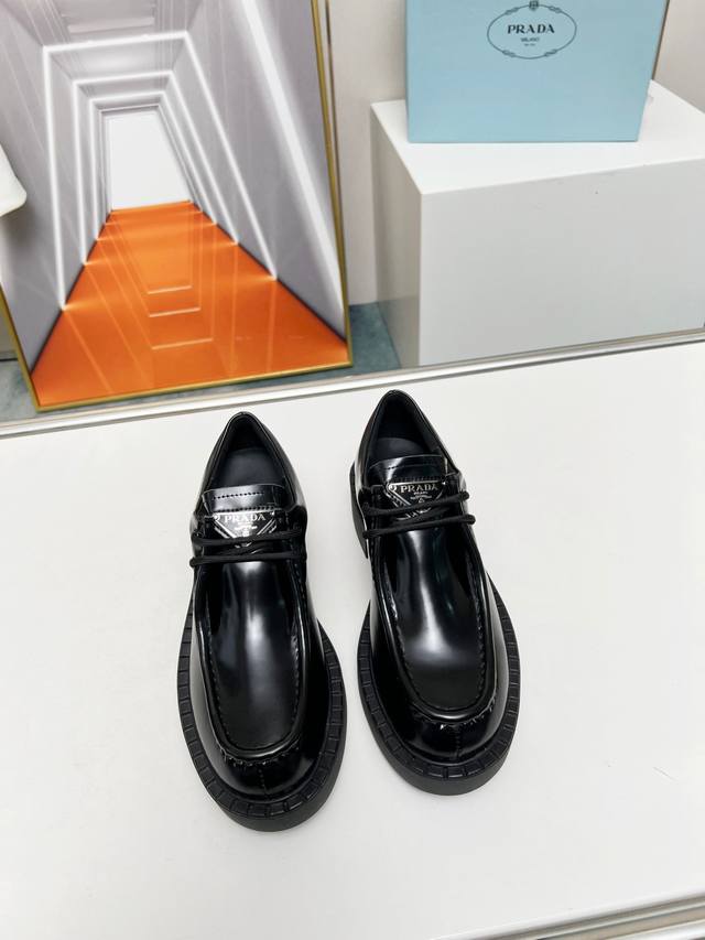 上新了 Prada普拉达 年早春夏升级版三角标厚底的设计上脚能增高不少哦! 原版购入拆卸复刻 还原正品味道 顶级代购版本! 鞋面原版开边珠牛皮 超有质感 内里 垫脚采用顶级混种羊皮 Zp开模成型大底 防滑耐磨 女款 35-41 出厂价P