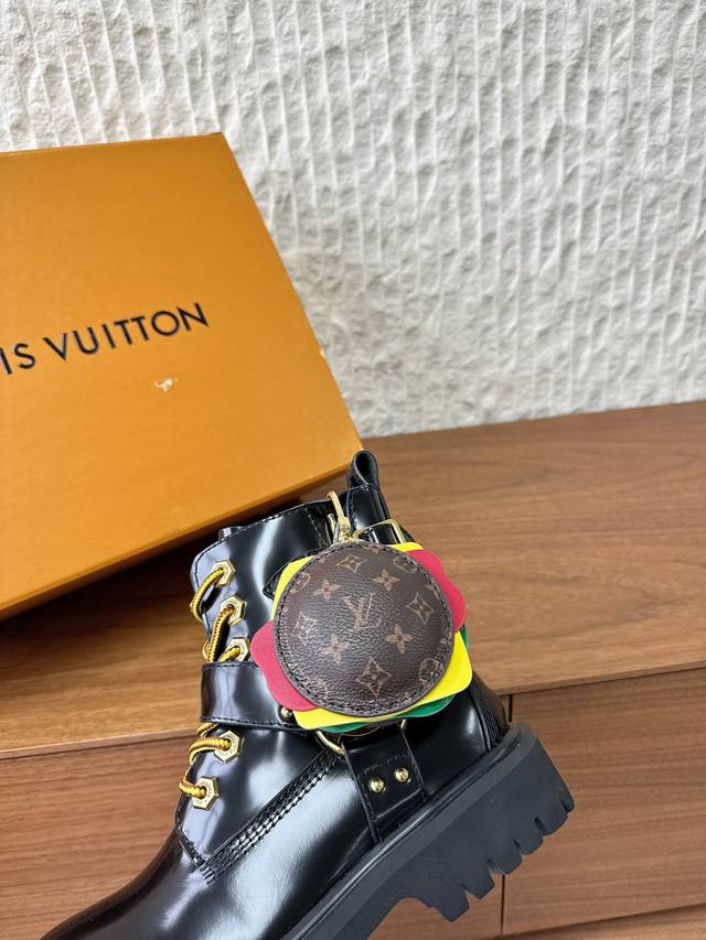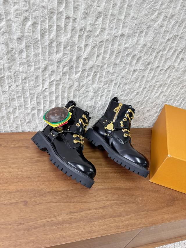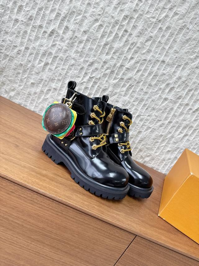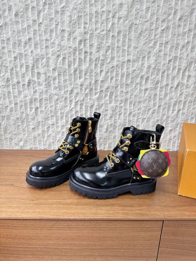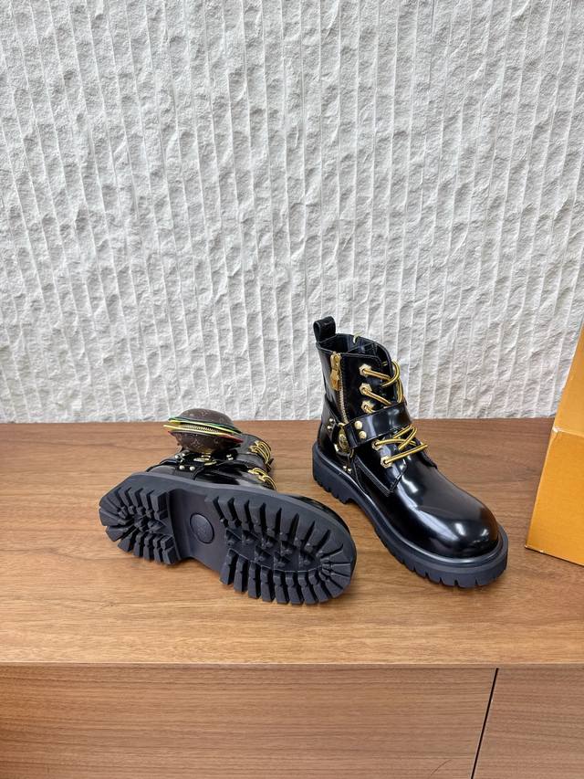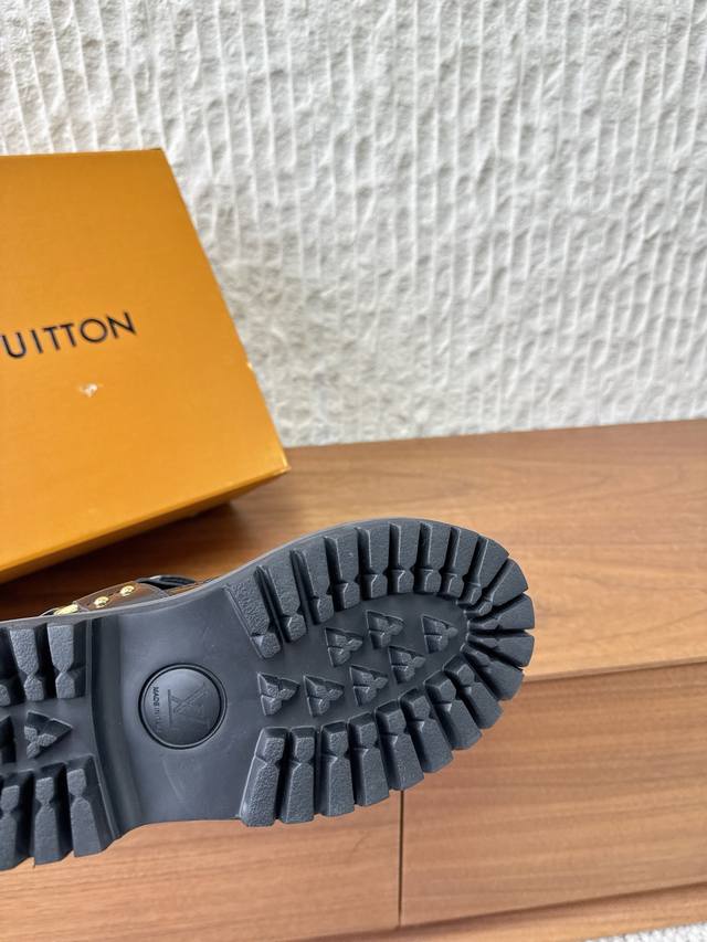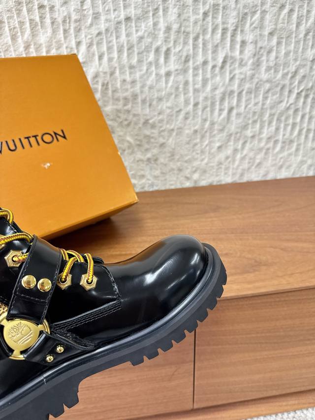 不要汉堡包-220 G566 Louis Vuitton X Timberland 联名款 路易威登 25Ss秋冬新款 系带 机车靴 这款松糕厚底系列今年非常爆,穿上**效果,和时尚的引领绝对的Yyds! 小牛皮Lv Remix Derby从经典登山靴中汲取灵感,重新构想其比例,打造出时尚前卫的轮廓。 鞋面结合了厚鞋带和刻有字母花的钩子,细节取自路易威登皮革制品,特别是字母帆布钥匙铃和黄色缝线的天然皮革后标签。这款鞋采用了厚实的橡胶外底。 鞋面:采用原版进口小牛皮 漆皮 内里垫脚:羊皮 跟高:4Cm 鞋底