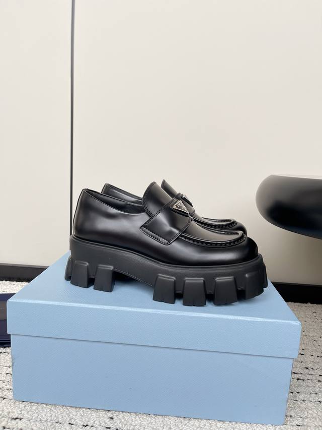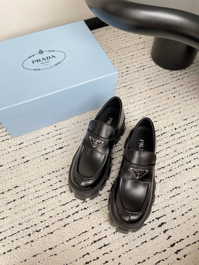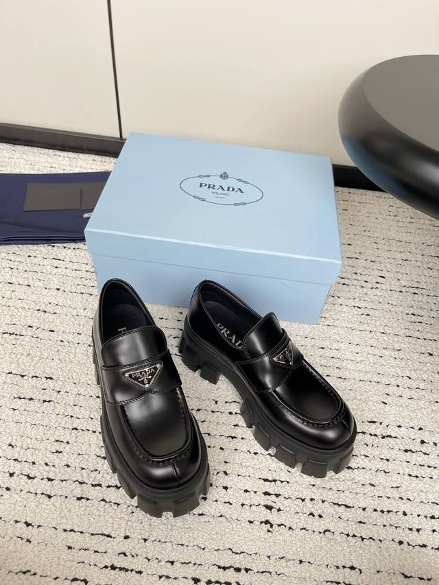 / 东莞货 Prada 普拉达三角牌复古乐福鞋 这款鞋面搭配三角牌金属扣,中和了整个鞋子的气质,完全不会特别正式或者老气,有点俏皮感觉但完全不会甜腻 质感非常的好