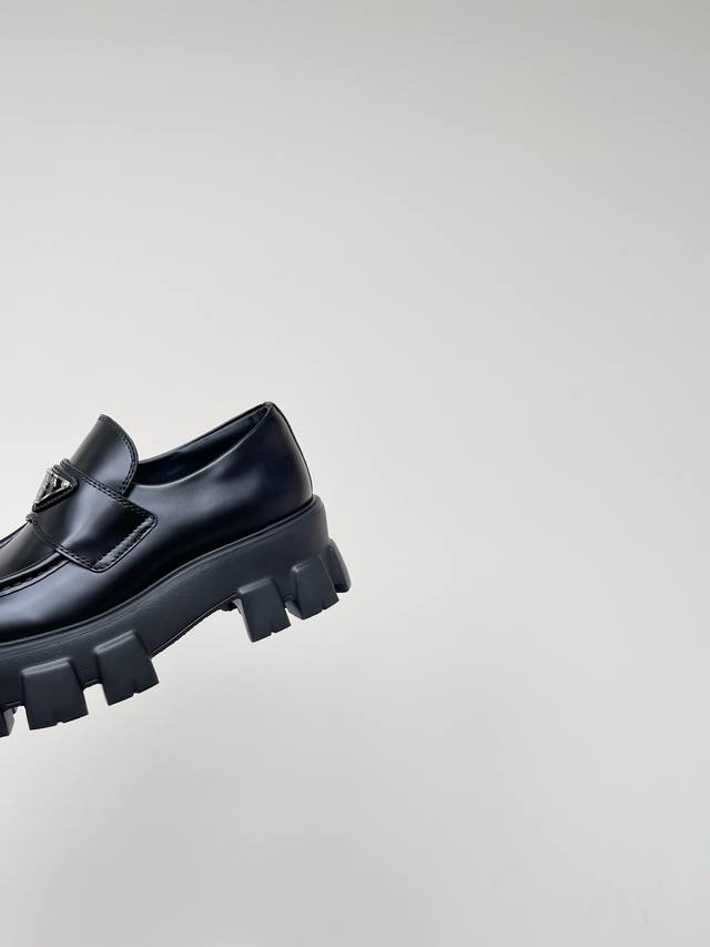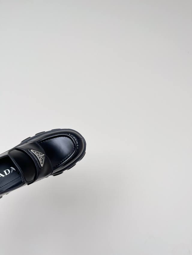东莞货 Prada 普拉达三角牌复古乐福鞋 这款鞋面搭配三角牌金属扣,中和了整个鞋子的气质,完全不会特别正式或者老气,有点俏皮感觉但完全不会甜腻 质感非常的好