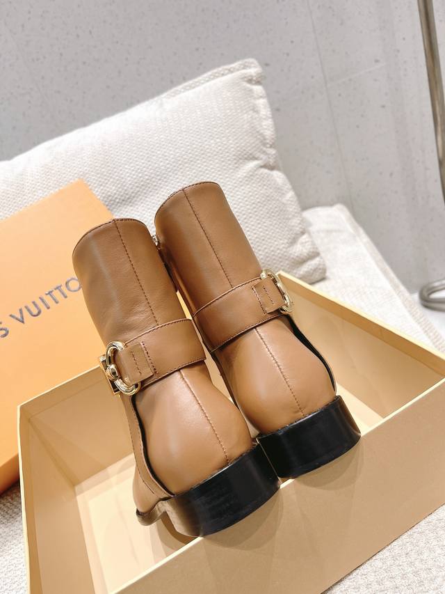 Louis Vuitton 早秋新款 25 Lv Legacy 尖头高跟长靴侧拉链老花皮带长筒靴 本款 Legacy 及踝靴取材光滑牛皮革,搭配宛若品牌传统硬箱