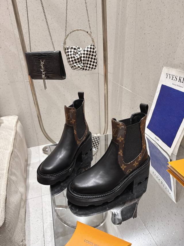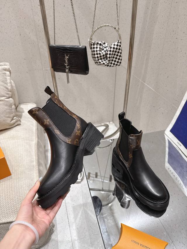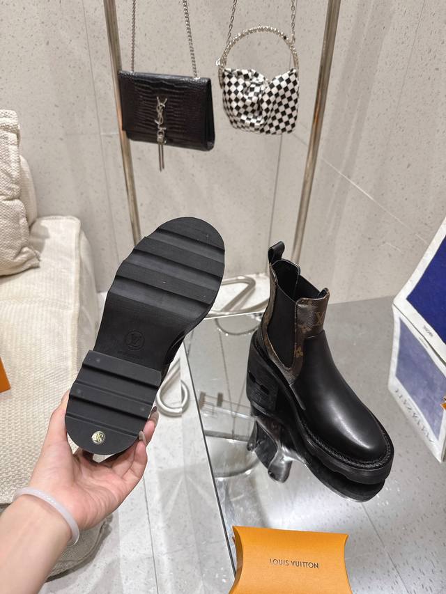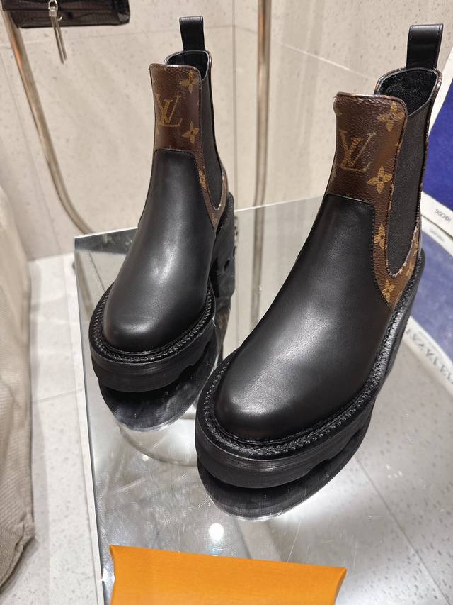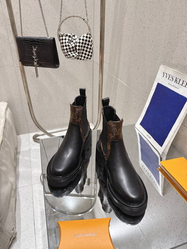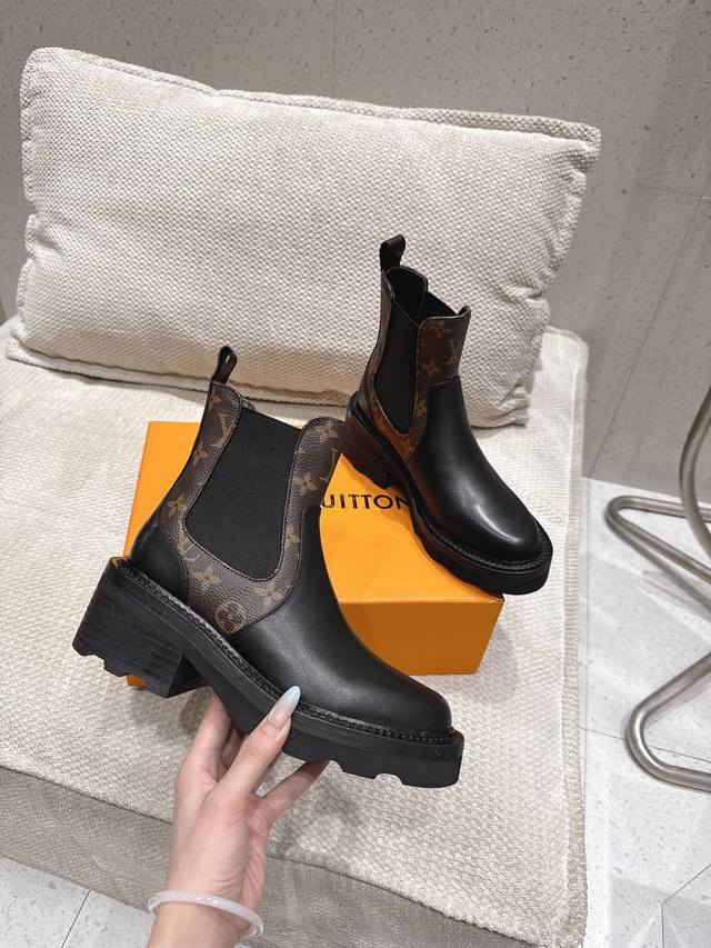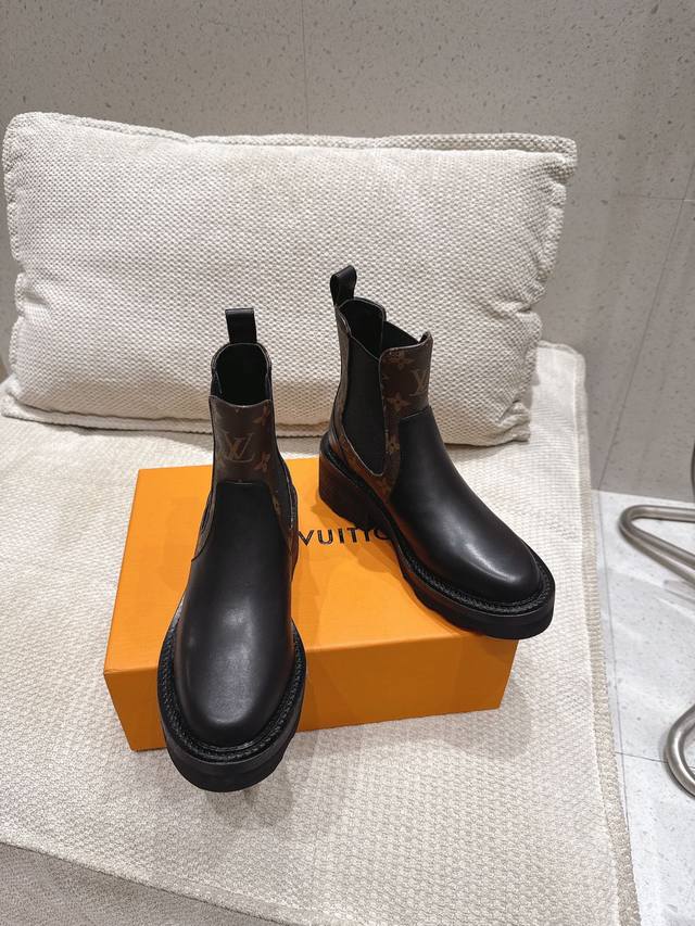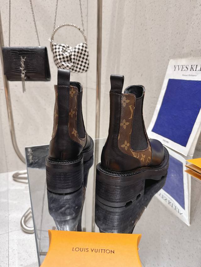 / 代购级!全配套包装 本款L Beaubourg 切尔西及踝靴拼接光滑牛皮革Monogram 帆布,以率性风姿回归潮流视野。凸纹微型外底厚实而不失轻盈质感,环绕沿