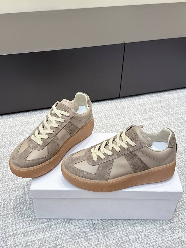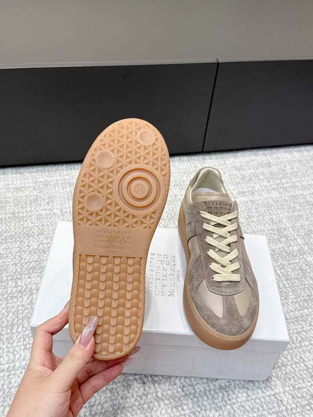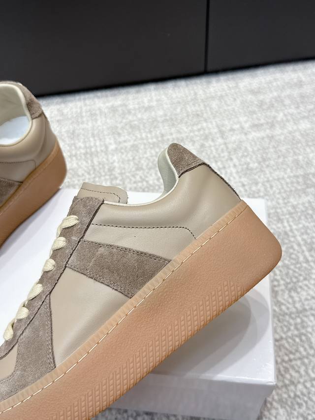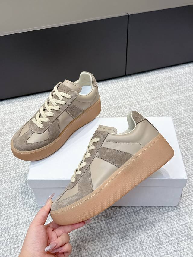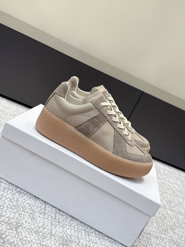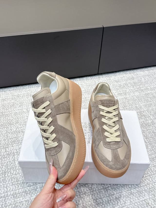 代购级别 Mm6|玛吉拉Maisonmargiela 2025S秋冬新款厚底 德训鞋 休闲 运动鞋 原版购入开发 做货 鬼才设计师品牌,一个轻奢品牌 这一款德国训练鞋延续了经典的T形真皮拼接设计,经过设计团队多次的精心改良,只为让您体验最原始的军旅味道~材质:特殊材料 布面,柔软细腻的特点与时尚潮流的布面相结合,使其既有超高的柔软舒适度,又同时保持不错的透气性能~舒适与质感并行,轻松驾驭四季穿着任何搭配 面料:开边珠牛皮 内里:原版内里 鞋底:原版大底 尺码:35-41 40.41订