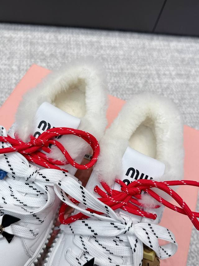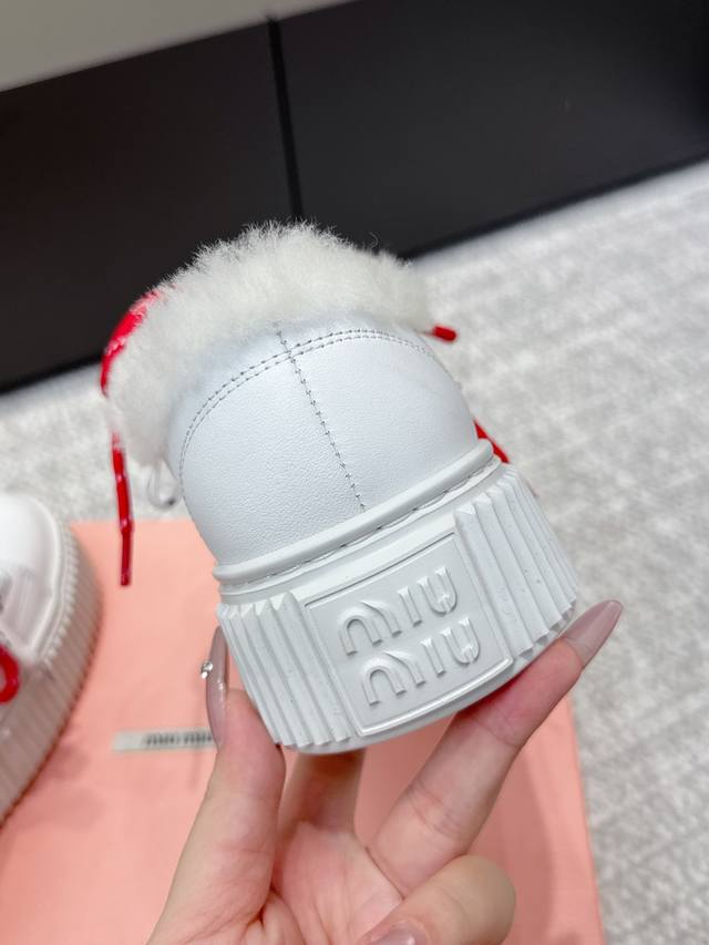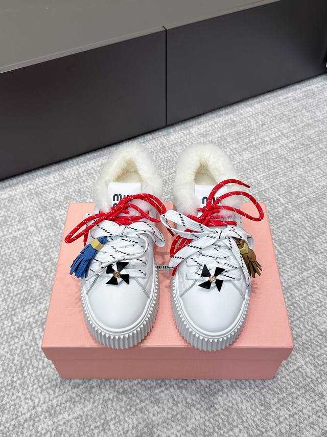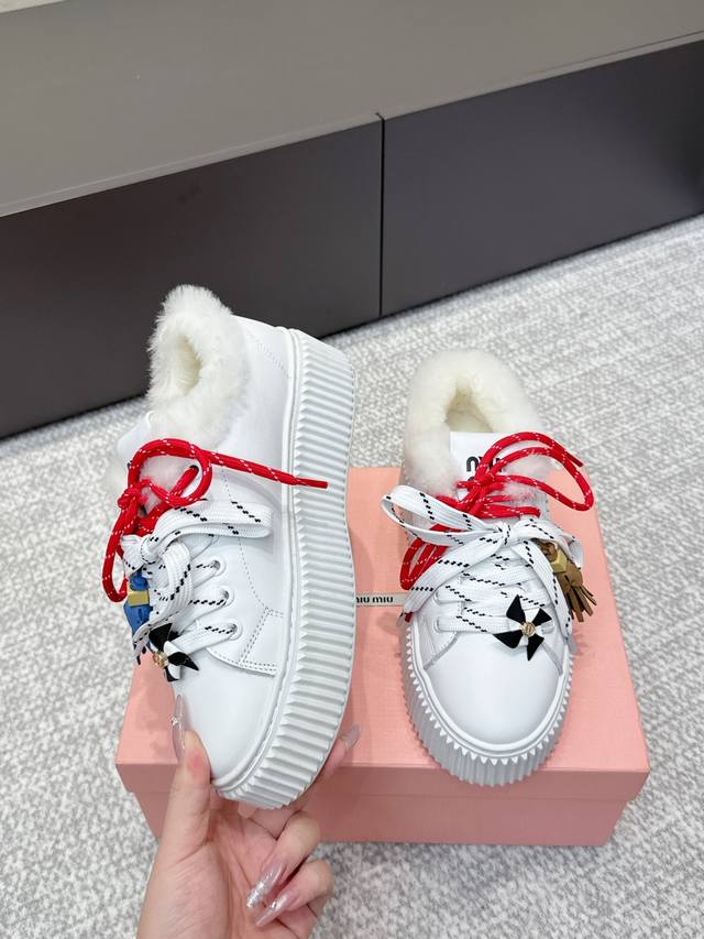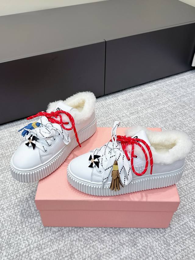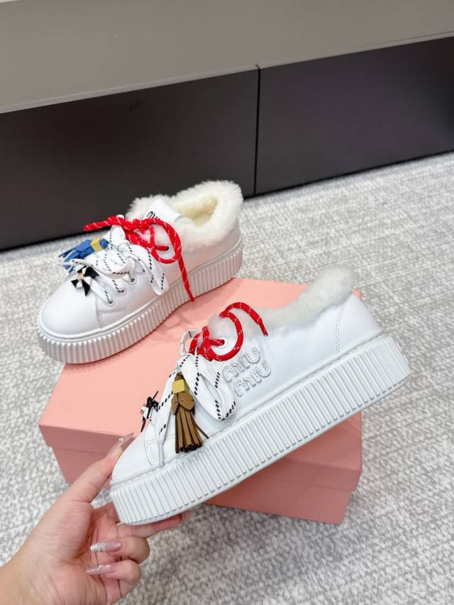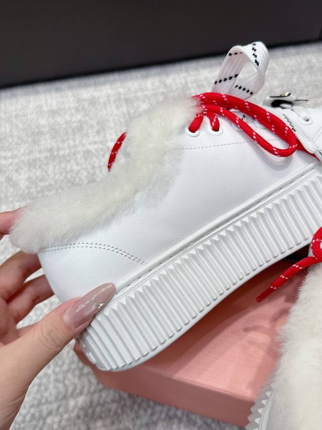 / 代购级羊皮里 羊毛里 Miumiu 25Ss 秋冬新款 厚底 小白鞋 羊毛小白鞋 简约造型,超轻原版开模鞋底,脚感妥妥满分 好穿好搭,增高6Cm Size: #