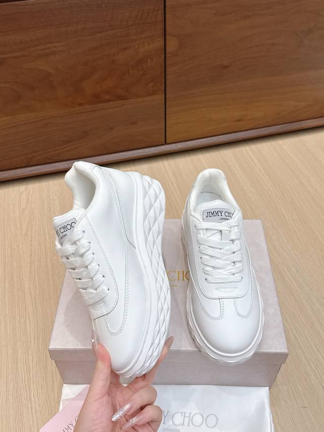 代购级 周仰杰新配色厚底休闲运动鞋小白鞋 奢柔纳帕革拼舒适质感莱卡面料制作,鞋底采用品牌标志性Diamond仿钻石多切面塑形,点睛散布熠熠水晶。未来风格设计,立体廓形比例夸张,营造舒适包裹感与显高视觉感。不同材质巧妙混搭,鞋身更显轻便灵巧,个性吸睛。厚底运动鞋款型,糅合新颖创意、时尚感与舒适性,为穿搭造型增添别样魅力!牛皮材质 羊皮内里 原版开模Tpu防滑大底 底厚4.5Cm Size:35-40