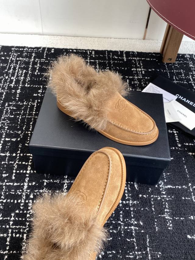 代购级 官网同步盒包装 Chanel 25Ss 小香 新款 水貂毛 小香乐福鞋 单鞋秋冬 香家必备爆款 女神系列,拥有香家特色优雅名媛气质,超级耐看,让人无法抗拒,心动Ing 鞋面:进口麂皮 进口牛油皮 原版开模五金Logo 内里:进口水貂毛 大底:意大利真皮大底 Size:#35-41 40 41 定做不退换