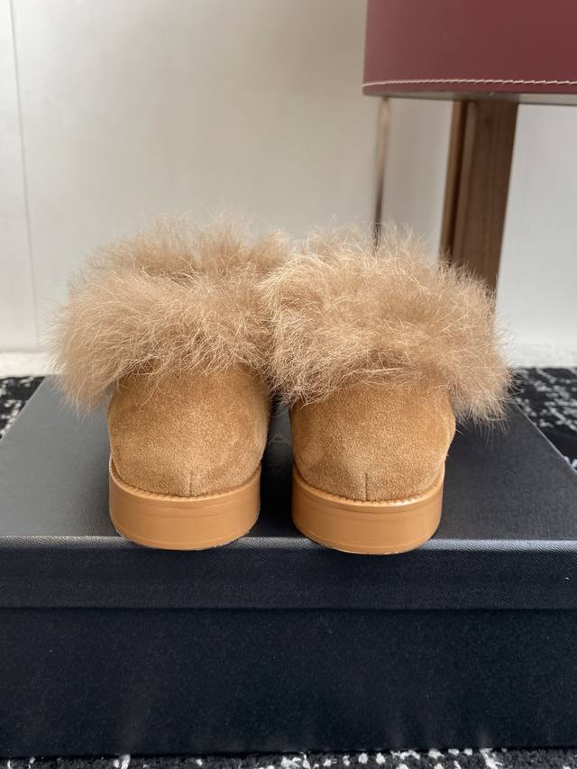 P家最新款毛拖 面:进口高丝光牛反绒 里:进口羊羔毛 垫:羊羔毛 底:超轻橡胶发泡大底 厚6Cm 标志性三角标,原版包装 Size...