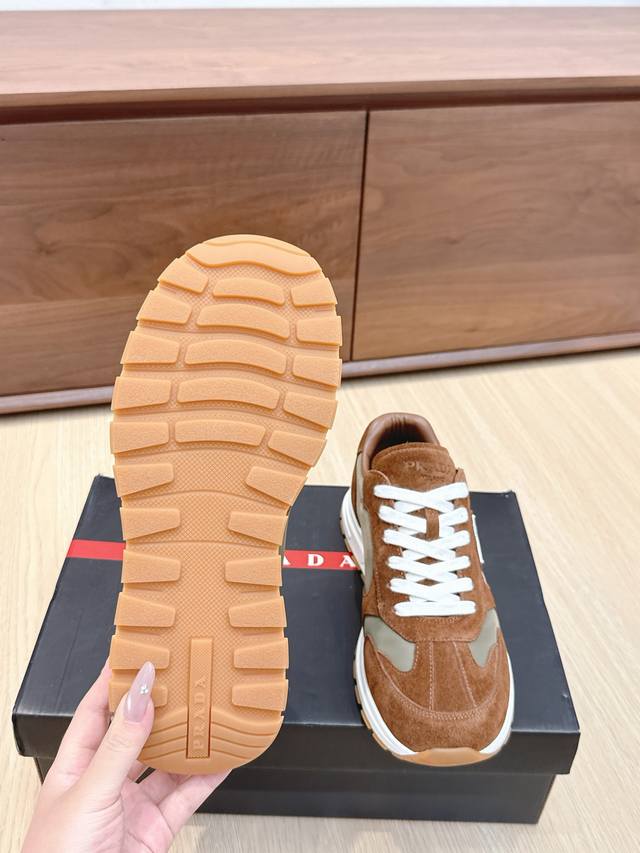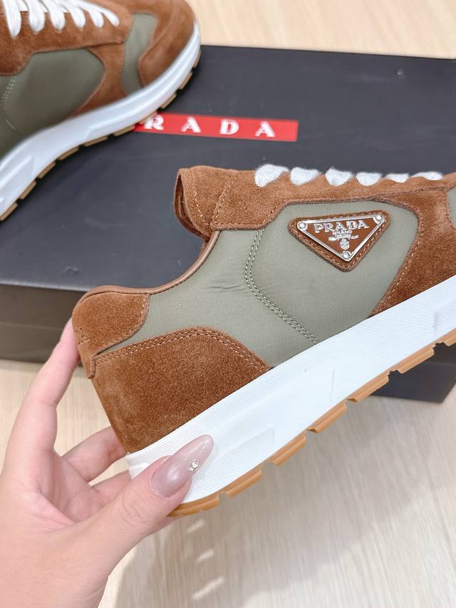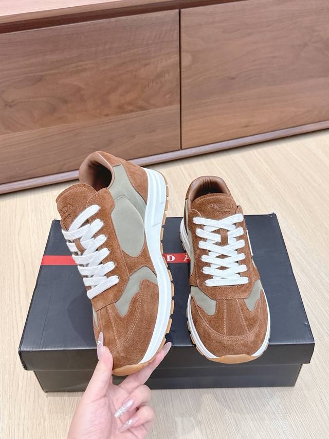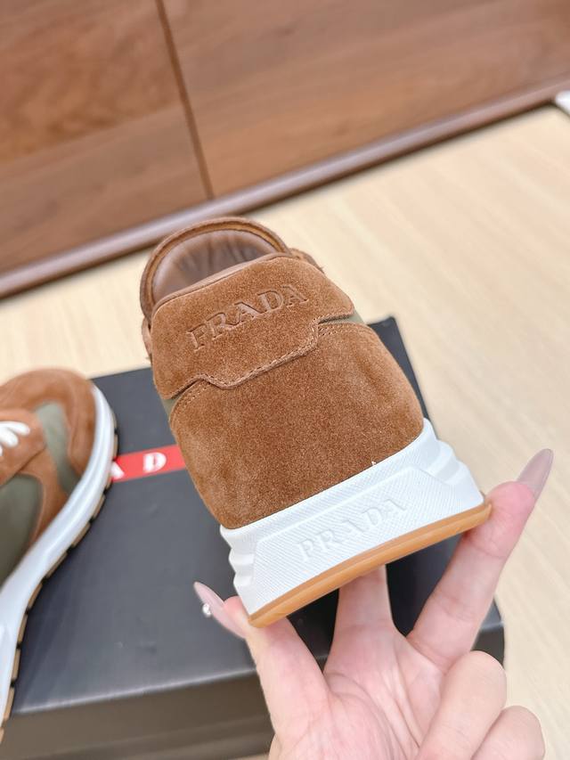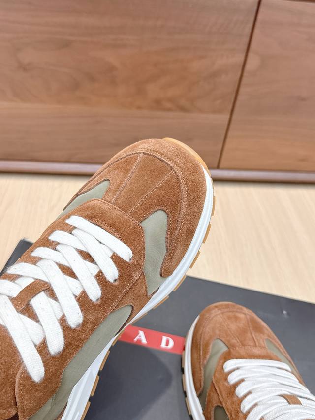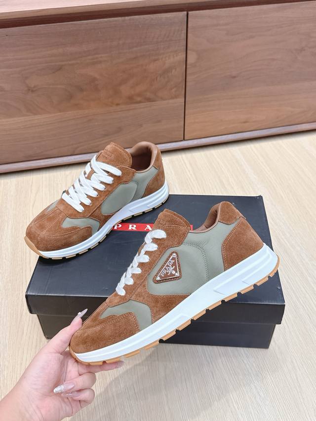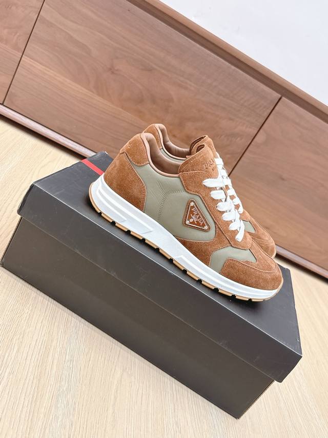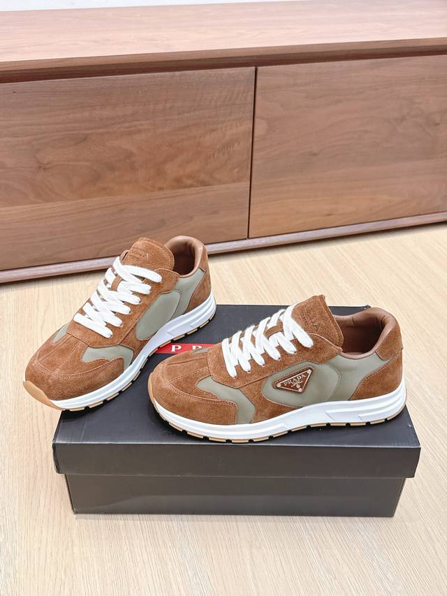 代购级 -#普拉达男士三角标休闲运动鞋 尼龙+麂皮材质 时尚百搭 底厚4.5Cm Size :39-44 38 45定制不退换