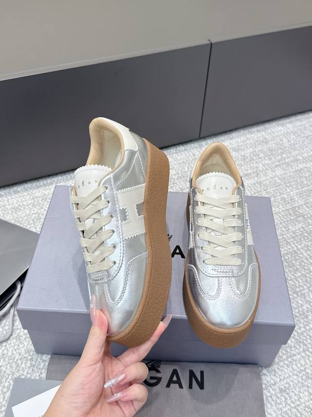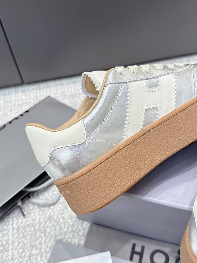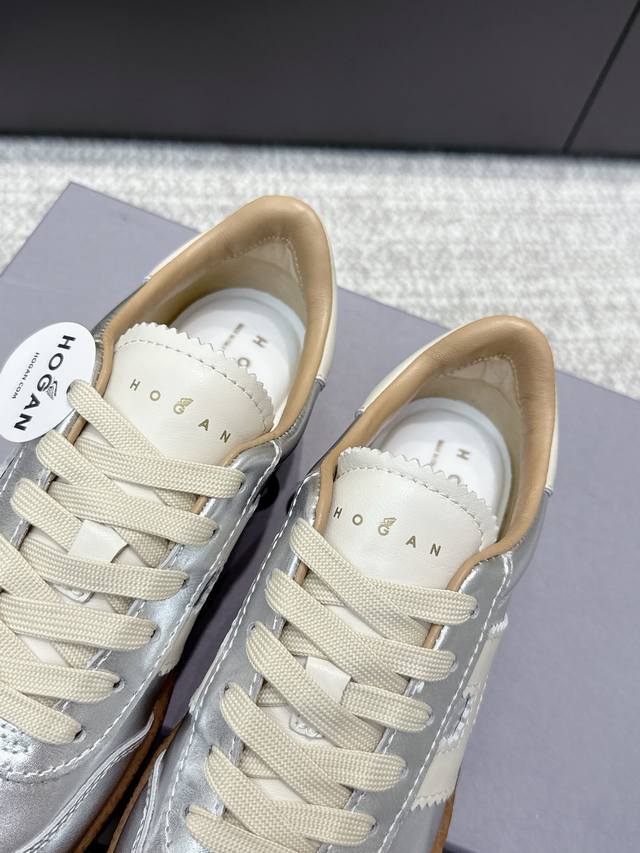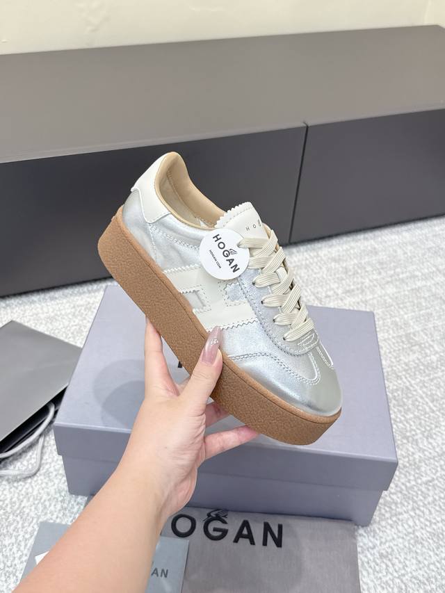 代购级 最新款 Hogan 厚底饼干鞋, New最新款来喽!,饼干鞋系列终于出金属配色啦 鞋面麂皮拼接了小牛皮的,兼顾了透气性与耐磨性超级适合夏天穿着 鞋头也做了防剐蹭和防水设计,再也不怕鞋头磨花啦 每日穿搭Iootd穿搭 明星同款 明星穿搭 穿搭神器 这双饼干鞋也太绝了,每个颜色都想All In 姐妹们这双夏日限定帆布饼干鞋真的绝绝子,6厘米高度,穿上直接腿长一米八 小个子狂喜这双鞋的增高效果太自然了,视觉上拉长腿型,但完全不会显笨重,走路稳稳的,逛街暴走一天都不累~ 鞋子超级轻上脚几乎感觉不到重量,就