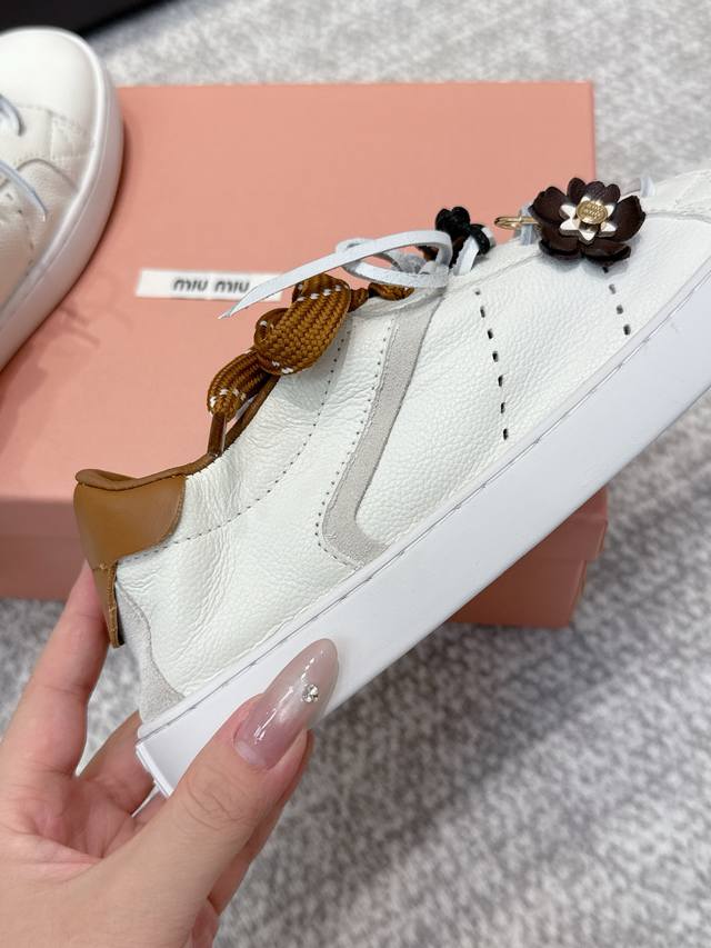 / 代购级 缪缪新款英伦风系带小白鞋 休闲鞋 新季的潮流要素一 此刻挚爱的概念,多元对撞,传达现代风格~ 怎么穿都好看 时髦精最爱 上脚超级舒服 牛皮材质 羊皮内里