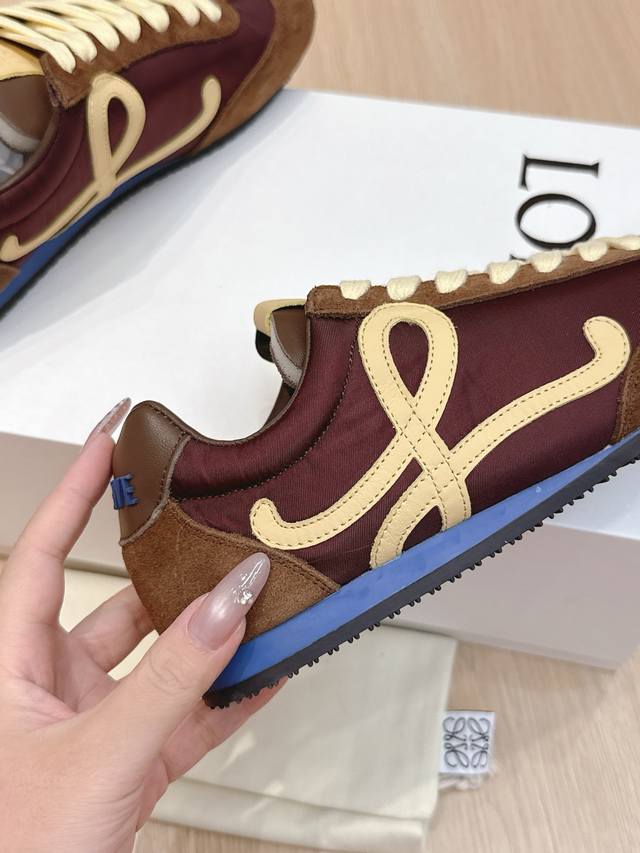 代购级 #罗意威新款大头运动鞋Ballet Runner2.0芭蕾阿甘鞋,鞋头的设计更有趣味性,脚后跟设计新颖 柔软舒适,这款阿甘鞋会被评为年度最舒适的暴走鞋 ,如履平地 !运动鞋建议正码 鞋子呈简约利落的低帮鞋型,侧面有品牌Logo的首字母,最重要的一点 ,穿上这款鞋就一定会爱上,而且再也无心选备其他运动风了。 材质介绍 : 鞋面由进口牛绒+小牛皮+风衣布 拼接而成 很考验针车走线的技术哟 ,原版定制磨具大底! 配齐包装 舒适 简约 百搭 暴走阿甘鞋 ,设计灵感来源于芭蕾舞鞋和20世纪70年代的鞋履风格