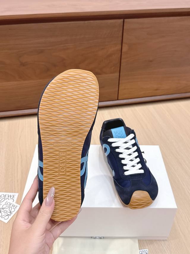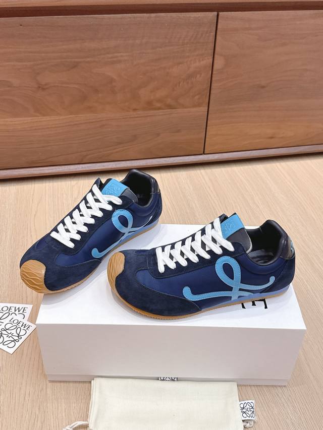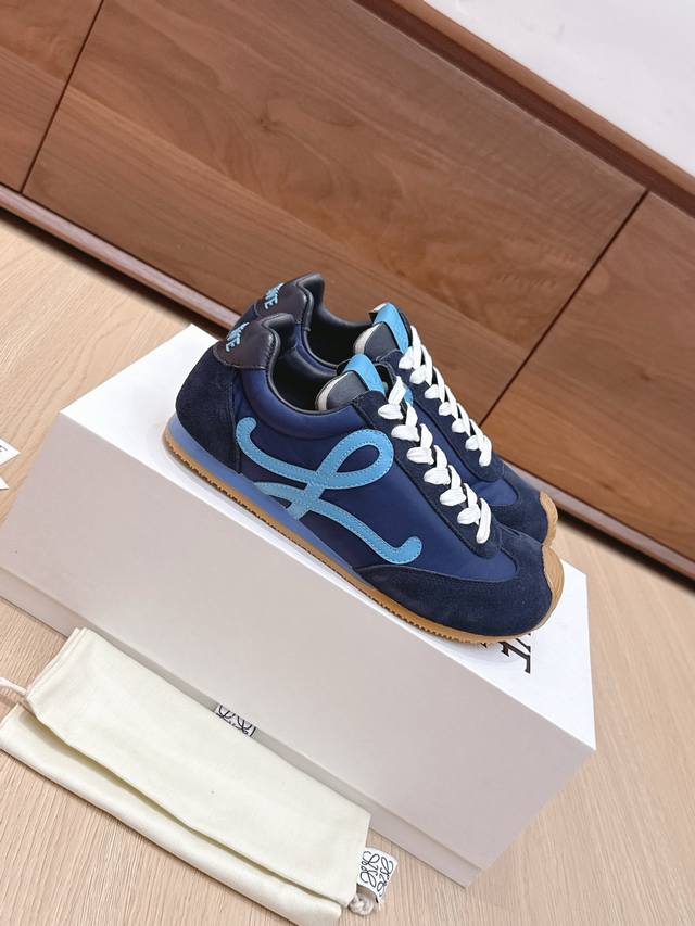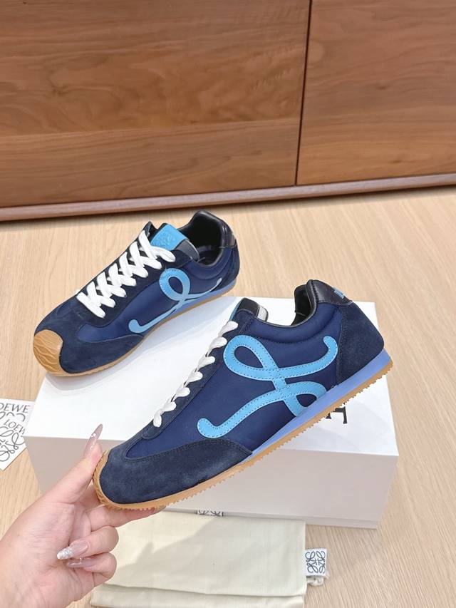 代购级 #罗意威新款大头运动鞋Ballet Runner2.0芭蕾阿甘鞋,鞋头的设计更有趣味性,脚后跟设计新颖 柔软舒适,这款阿甘鞋会被评为年度最舒适的暴走鞋 ,如履平地 !运动鞋建议正码 鞋子呈简约利落的低帮鞋型,侧面有品牌Logo的首字母,最重要的一点 ,穿上这款鞋就一定会爱上,而且再也无心选备其他运动风了。 材质介绍 : 鞋面由进口牛绒+小牛皮+风衣布 拼接而成 很考验针车走线的技术哟 ,原版定制磨具大底! 配齐包装 舒适 简约 百搭 暴走阿甘鞋 ,设计灵感来源于芭蕾舞鞋和20世纪70年代的鞋履风格