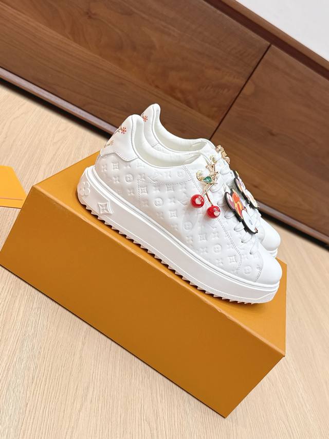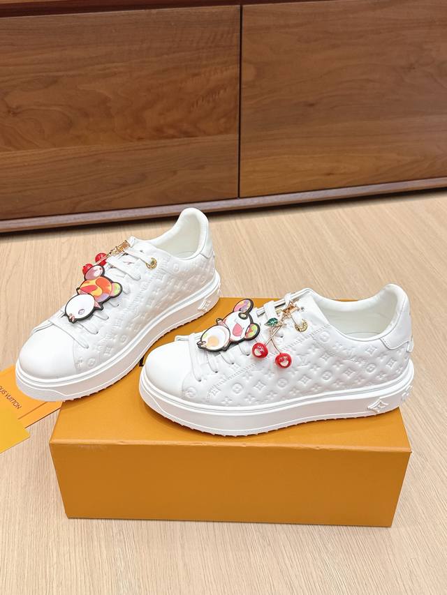 代购级 配饰60 Lv X Tm村上隆 联名款 驴牌 L家 Time Out 系列 压花 浮雕 吊坠 休闲 小白鞋 运动鞋 原版购入开发 做货 本款 Time