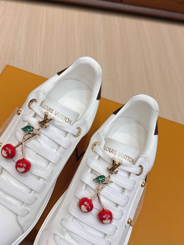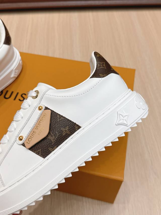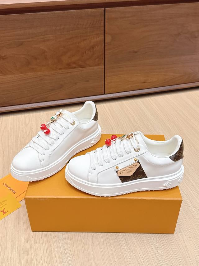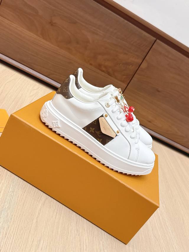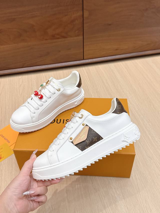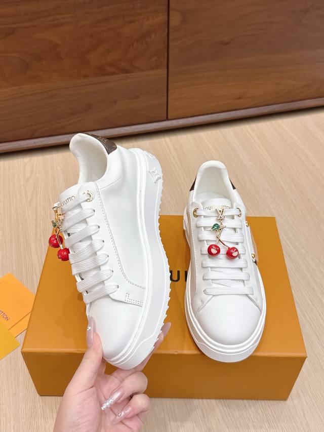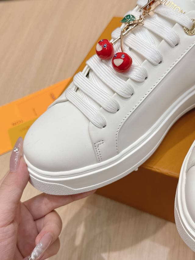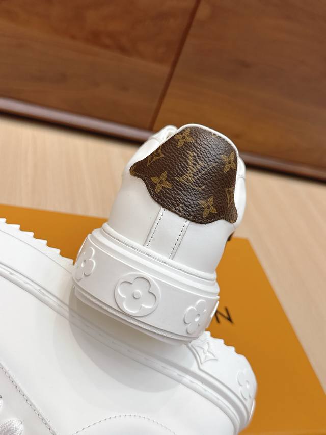 代购级 配饰60 Lv X Tm村上隆 联名款 驴牌 L家 Time Out 系列 压花 浮雕 吊坠 休闲 小白鞋 运动鞋 原版购入开发 做货 本款 Time Out 运动鞋传递路易威登 X 村上隆再版系列的动感风范,为鞋面点缀全幅 Monogram 凸纹,再以鞋舌和鞋跟的缤纷 Lv 字母道出艺术家的“超扁平”美学。鞋带标注趣意盎然的可拆卸皮革贴饰 配送专柜精美包装 面料: 原版进口头层牛皮 内里:原版定制柔软羊皮 鞋底:原版开模Tpu防滑大底 底厚:4Cm Size: 女款35-40 定制41