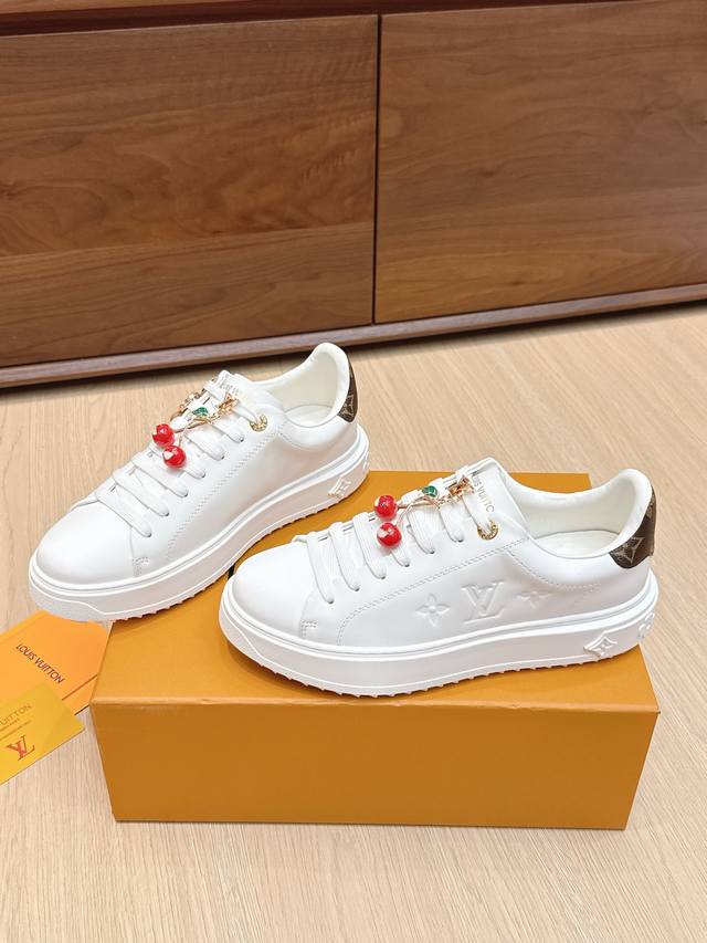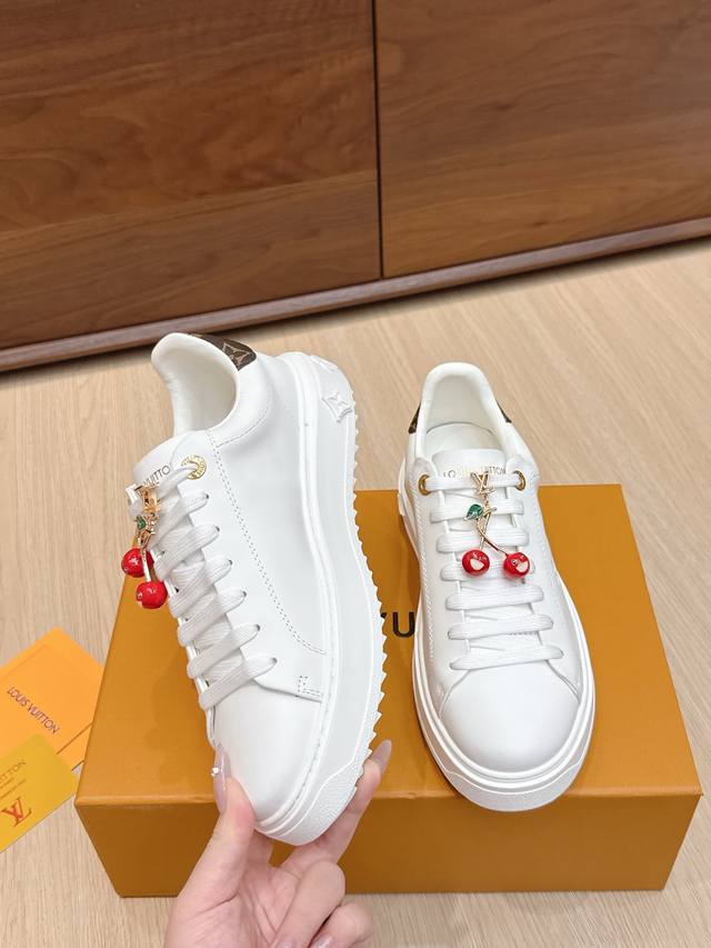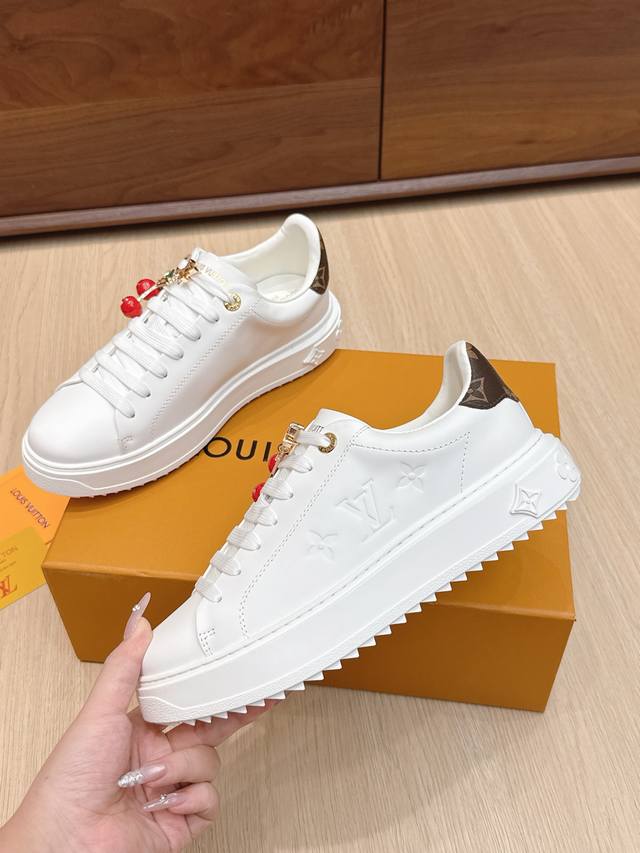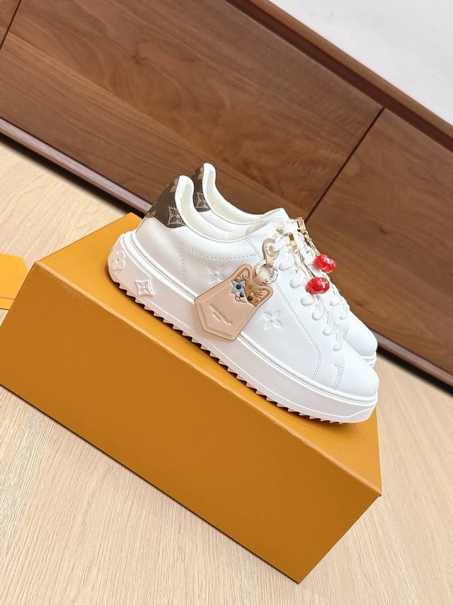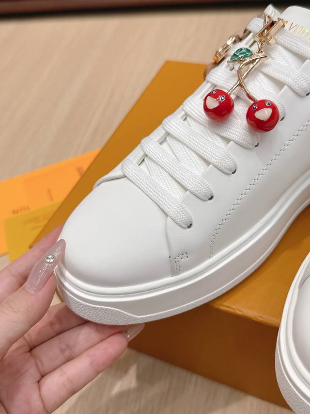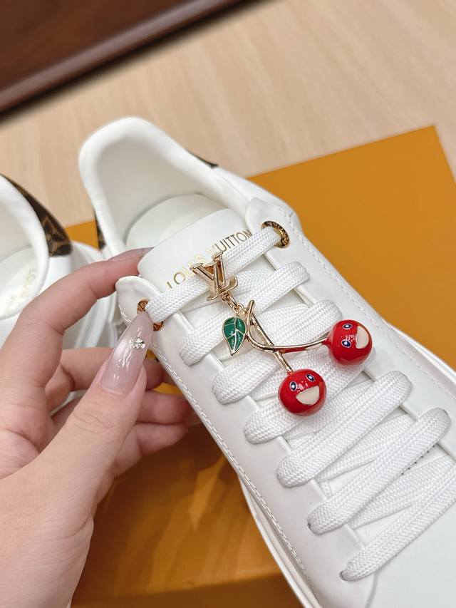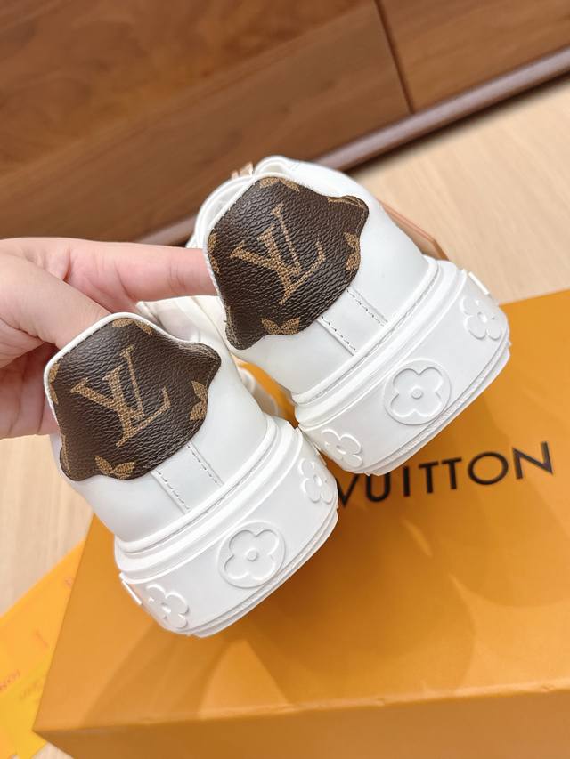 代购级 配饰60 Lv X Tm村上隆 联名款 驴牌 L家 Time Out 系列 压花 浮雕 吊坠 休闲 小白鞋 运动鞋 原版购入开发 做货 本款 Time Out 运动鞋传递路易威登 X 村上隆再版系列的动感风范,为鞋面点缀全幅 Monogram 凸纹,再以鞋舌和鞋跟的缤纷 Lv 字母道出艺术家的“超扁平”美学。鞋带标注趣意盎然的可拆卸皮革贴饰 配送专柜精美包装 面料: 原版进口头层牛皮 内里:原版定制柔软羊皮 鞋底:原版开模Tpu防滑大底 底厚:4Cm Size: 女款35-40 定制41