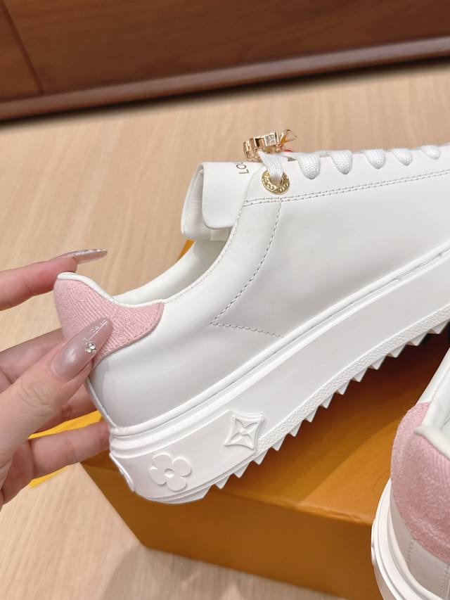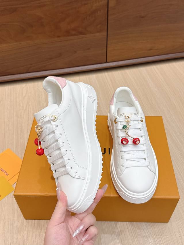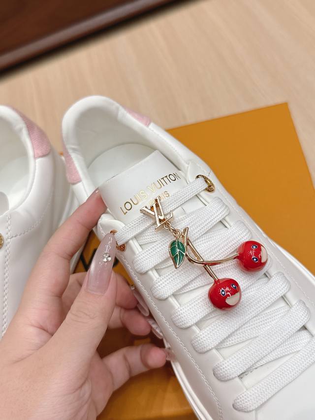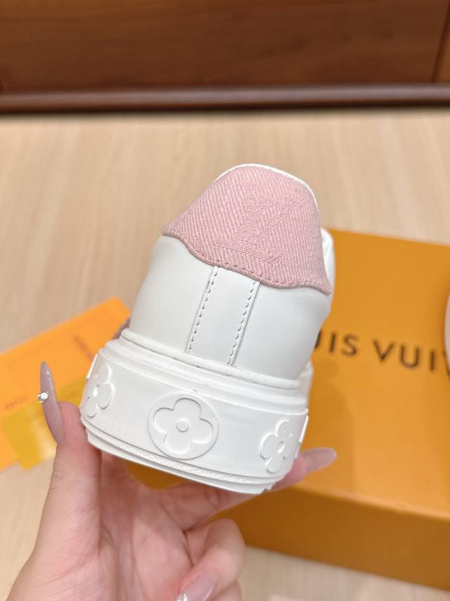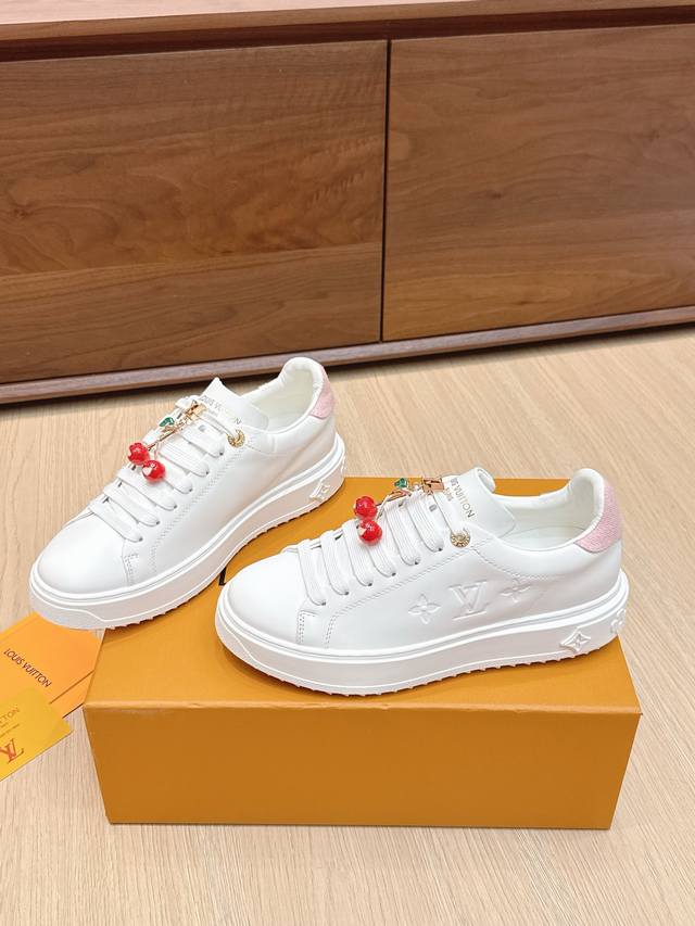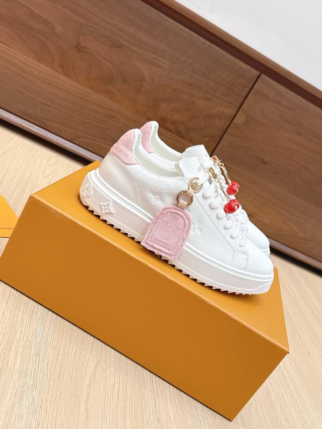 代购级 配饰60 Lv X Tm村上隆 联名款 驴牌 L家 Time Out 系列 压花 浮雕 吊坠 休闲 小白鞋 运动鞋 原版购入开发 做货 本款 Time Out 运动鞋传递路易威登 X 村上隆再版系列的动感风范,为鞋面点缀全幅 Monogram 凸纹,再以鞋舌和鞋跟的缤纷 Lv 字母道出艺术家的“超扁平”美学。鞋带标注趣意盎然的可拆卸皮革贴饰 配送专柜精美包装 面料: 原版进口头层牛皮 内里:原版定制柔软羊皮 鞋底:原版开模Tpu防滑大底 底厚:4Cm Size: 女款35-40 定制41