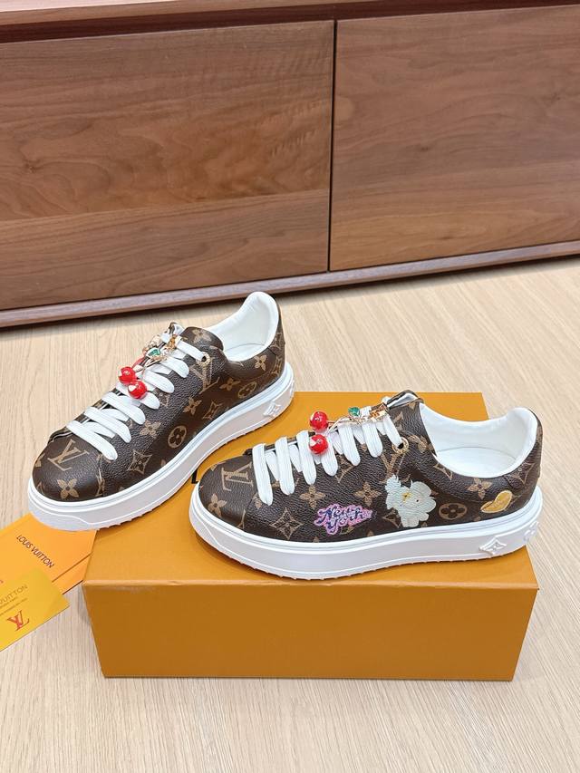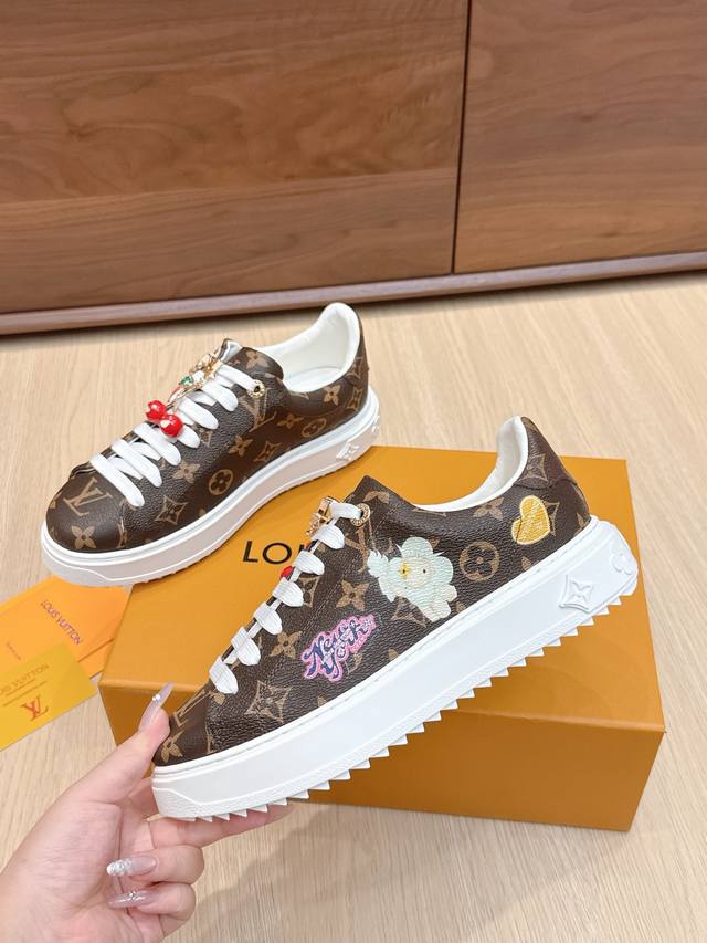 代购级 配饰60 Lv X Tm村上隆 联名款 驴牌 L家 Time Out 系列 压花 浮雕 吊坠 休闲 小白鞋 运动鞋 原版购入开发 做货 本款 Time