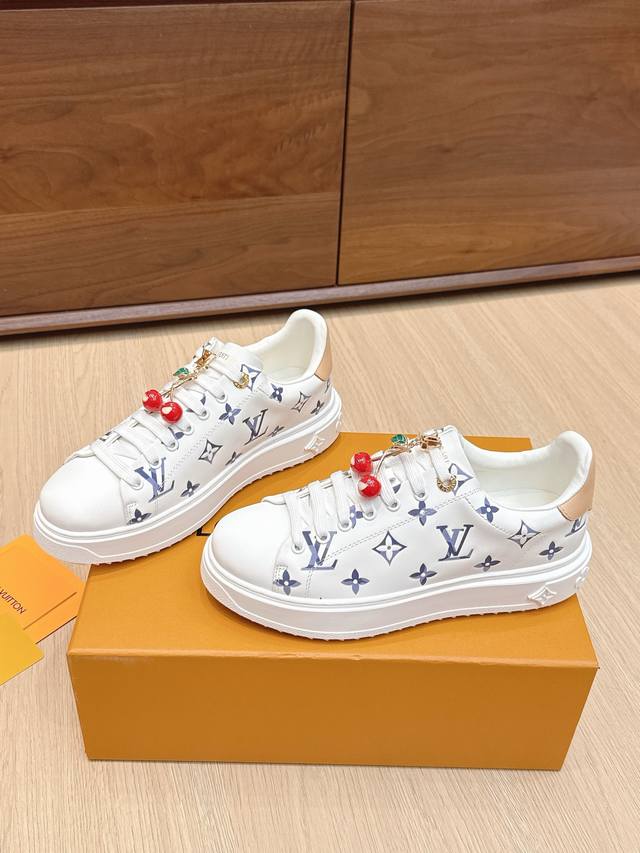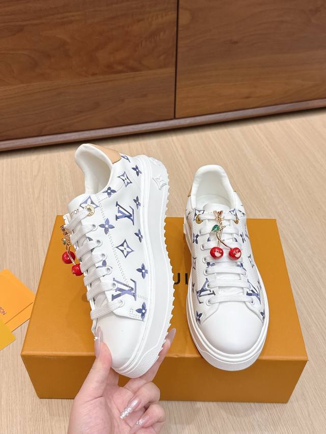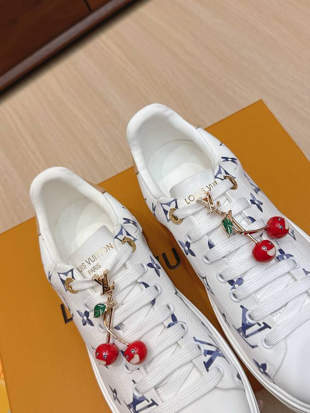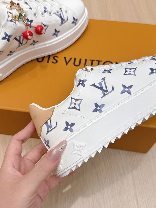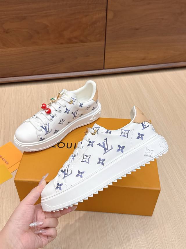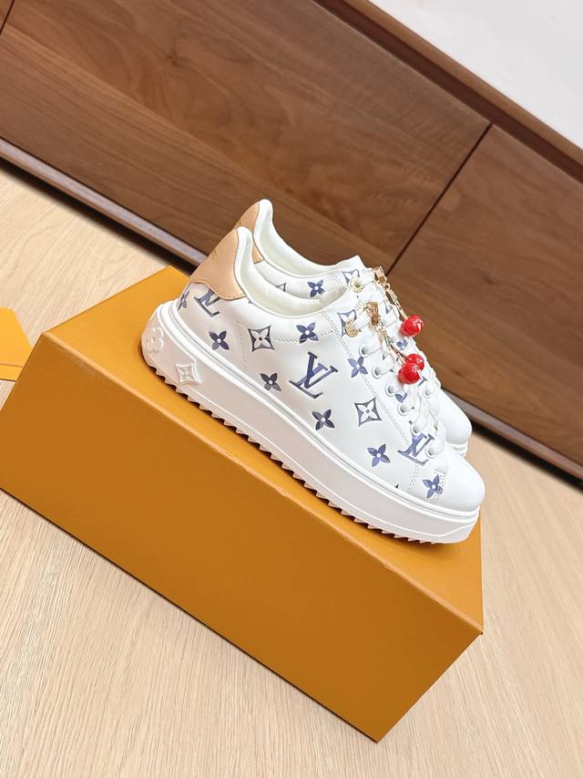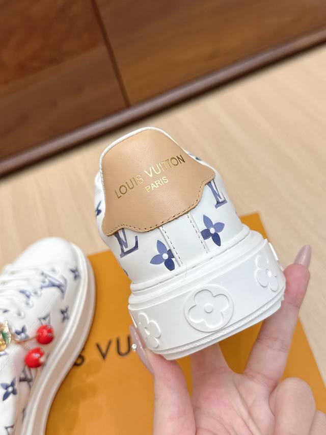 代购级 配饰60 Lv X Tm村上隆 联名款 驴牌 L家 Time Out 系列 压花 浮雕 吊坠 休闲 小白鞋 运动鞋 原版购入开发 做货 本款 Time Out 运动鞋传递路易威登 X 村上隆再版系列的动感风范,为鞋面点缀全幅 Monogram 凸纹,再以鞋舌和鞋跟的缤纷 Lv 字母道出艺术家的“超扁平”美学。鞋带标注趣意盎然的可拆卸皮革贴饰 配送专柜精美包装 面料: 原版进口头层牛皮 内里:原版定制柔软羊皮 鞋底:原版开模Tpu防滑大底 底厚:4Cm Size: 女款35-40 定制41