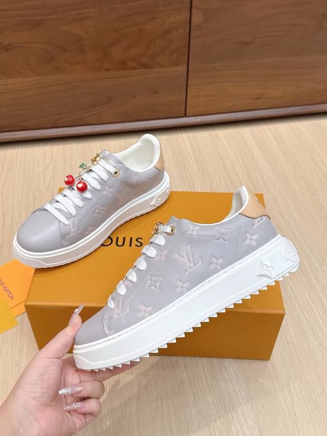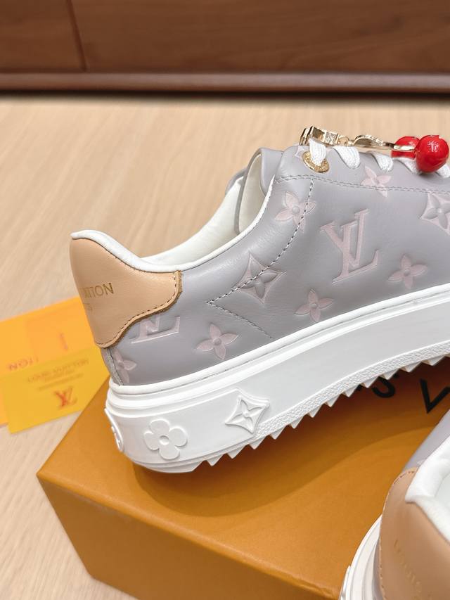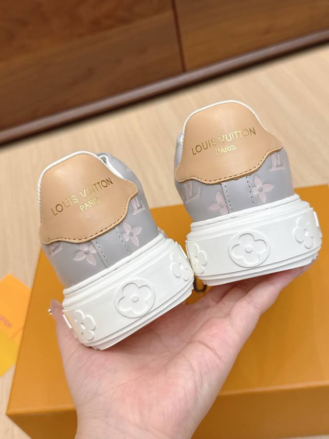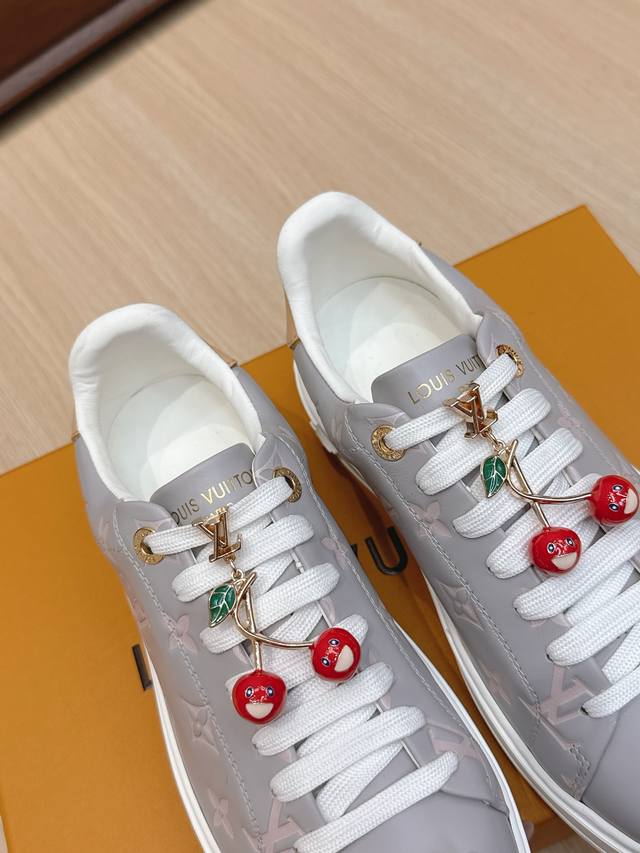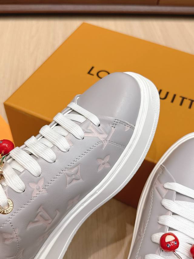 代购级 配饰60 Lv X Tm村上隆 联名款 驴牌 L家 Time Out 系列 压花 浮雕 吊坠 休闲 小白鞋 运动鞋 原版购入开发 做货 本款 Time Out 运动鞋传递路易威登 X 村上隆再版系列的动感风范,为鞋面点缀全幅 Monogram 凸纹,再以鞋舌和鞋跟的缤纷 Lv 字母道出艺术家的“超扁平”美学。鞋带标注趣意盎然的可拆卸皮革贴饰 配送专柜精美包装 面料: 原版进口头层牛皮 内里:原版定制柔软羊皮 鞋底:原版开模Tpu防滑大底 底厚:4Cm Size: 女款35-40 定制41