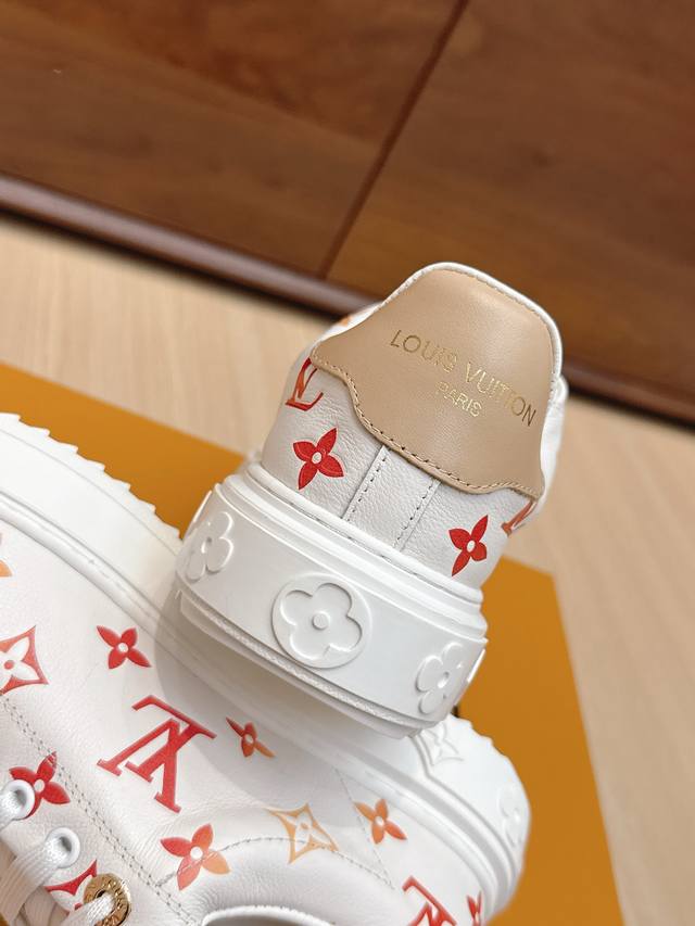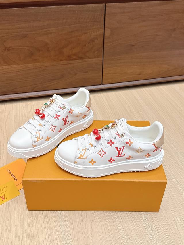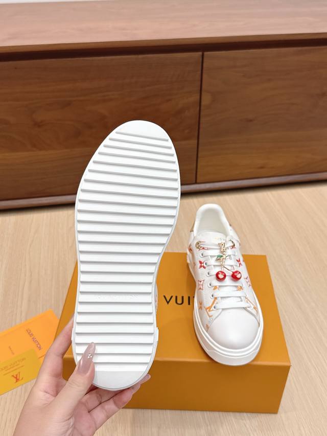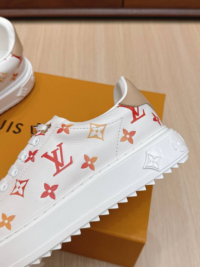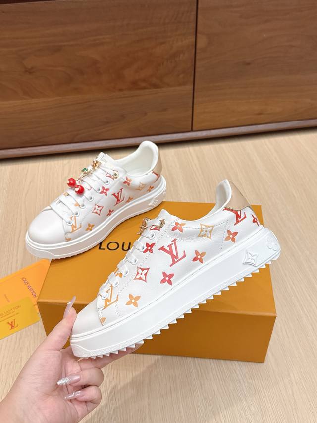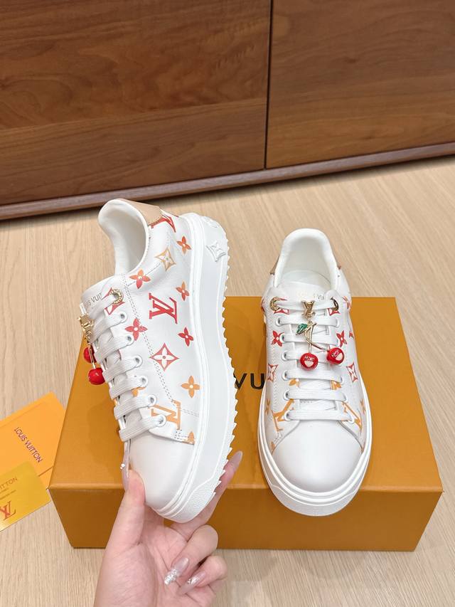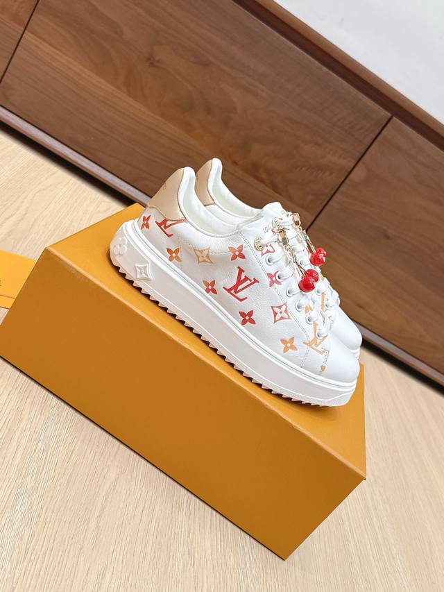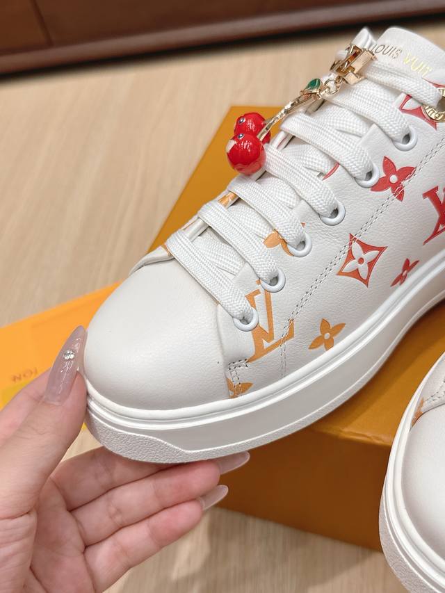 代购级 配饰60 Lv X Tm村上隆 联名款 驴牌 L家 Time Out 系列 压花 浮雕 吊坠 休闲 小白鞋 运动鞋 原版购入开发 做货 本款 Time Out 运动鞋传递路易威登 X 村上隆再版系列的动感风范,为鞋面点缀全幅 Monogram 凸纹,再以鞋舌和鞋跟的缤纷 Lv 字母道出艺术家的“超扁平”美学。鞋带标注趣意盎然的可拆卸皮革贴饰 配送专柜精美包装 面料: 原版进口头层牛皮 内里:原版定制柔软羊皮 鞋底:原版开模Tpu防滑大底 底厚:4Cm Size: 女款35-40 定制41