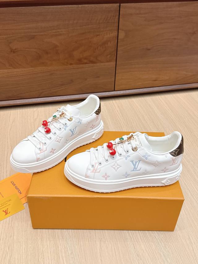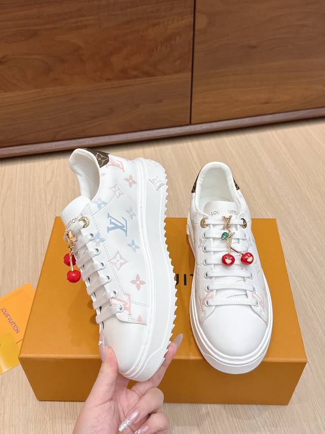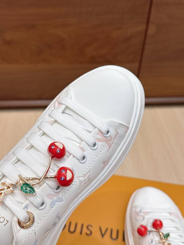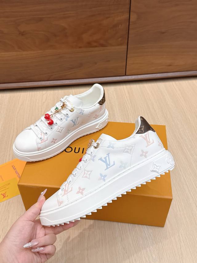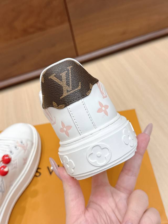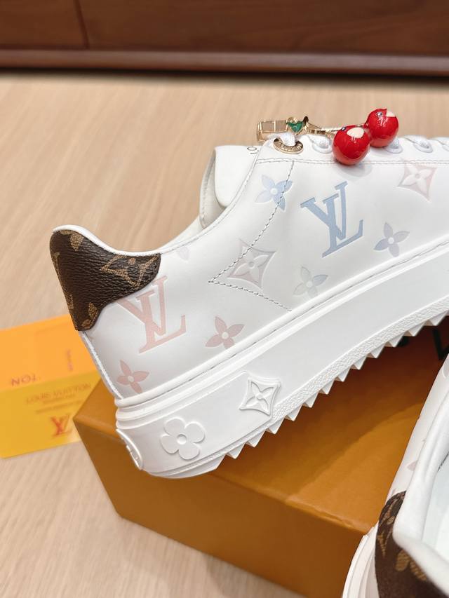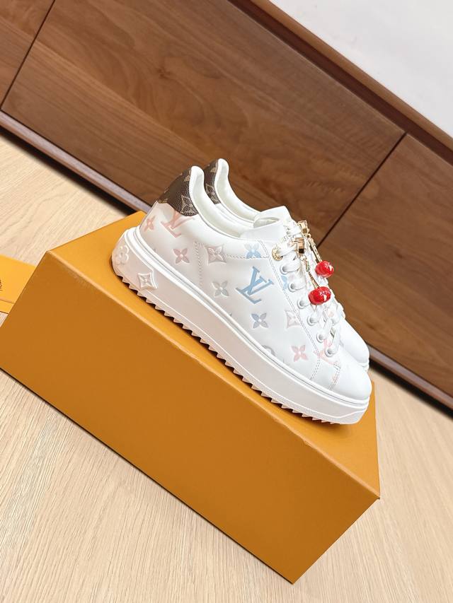 代购级 配饰60 Lv X Tm村上隆 联名款 驴牌 L家 Time Out 系列 压花 浮雕 吊坠 休闲 小白鞋 运动鞋 原版购入开发 做货 本款 Time Out 运动鞋传递路易威登 X 村上隆再版系列的动感风范,为鞋面点缀全幅 Monogram 凸纹,再以鞋舌和鞋跟的缤纷 Lv 字母道出艺术家的“超扁平”美学。鞋带标注趣意盎然的可拆卸皮革贴饰 配送专柜精美包装 面料: 原版进口头层牛皮 内里:原版定制柔软羊皮 鞋底:原版开模Tpu防滑大底 底厚:4Cm Size: 女款35-40 定制41