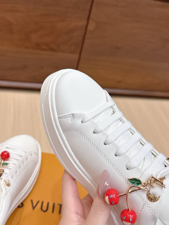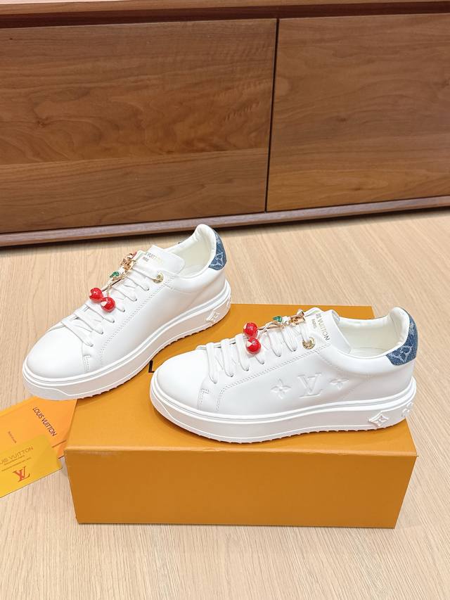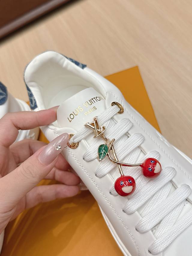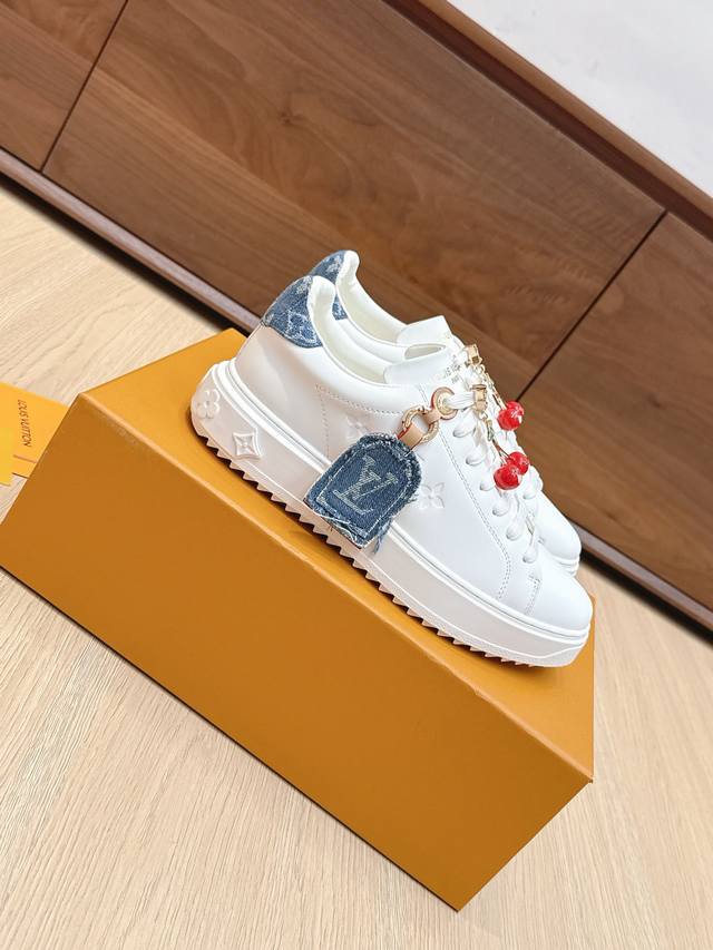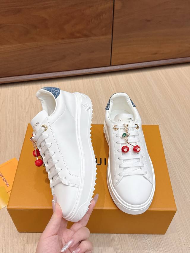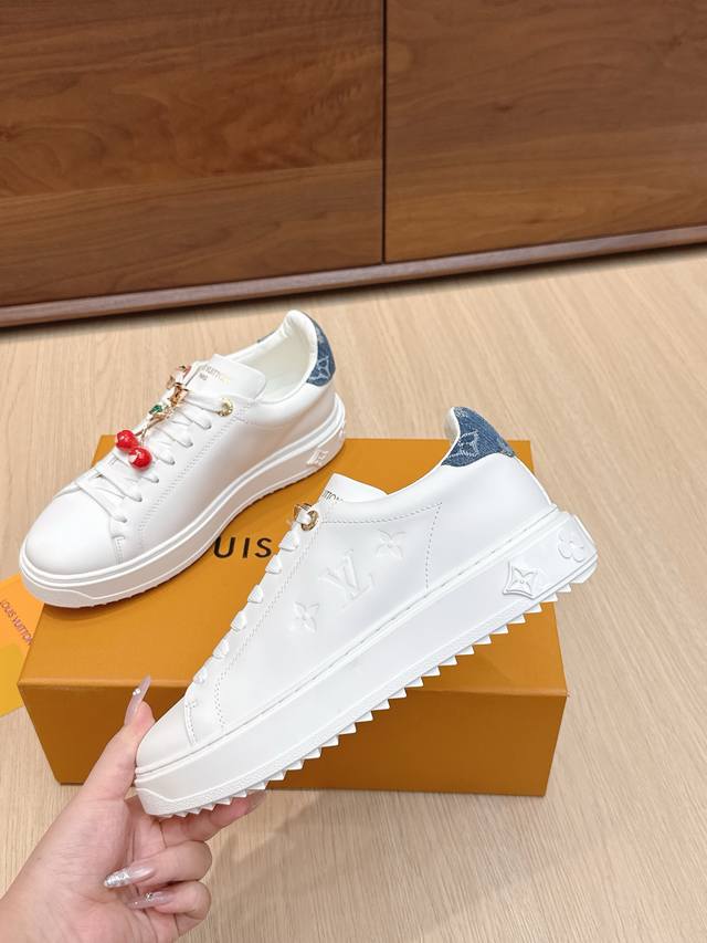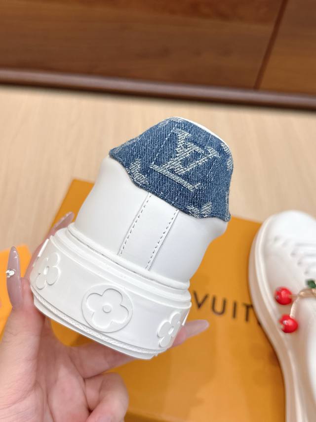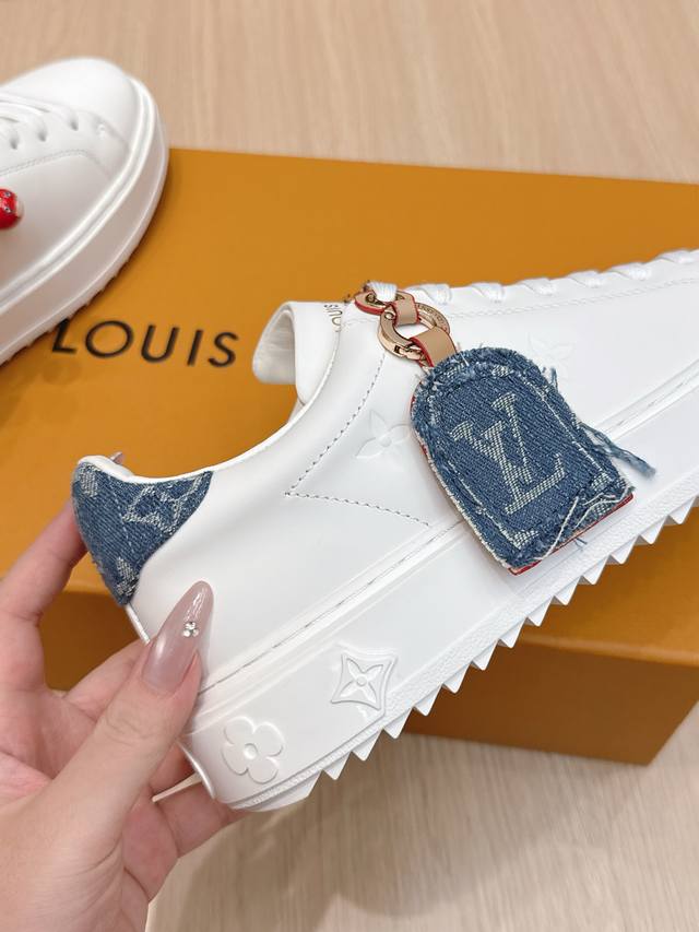 代购级 配饰60 Lv X Tm村上隆 联名款 驴牌 L家 Time Out 系列 压花 浮雕 吊坠 休闲 小白鞋 运动鞋 原版购入开发 做货 本款 Time Out 运动鞋传递路易威登 X 村上隆再版系列的动感风范,为鞋面点缀全幅 Monogram 凸纹,再以鞋舌和鞋跟的缤纷 Lv 字母道出艺术家的“超扁平”美学。鞋带标注趣意盎然的可拆卸皮革贴饰 配送专柜精美包装 面料: 原版进口头层牛皮 内里:原版定制柔软羊皮 鞋底:原版开模Tpu防滑大底 底厚:4Cm Size: 女款35-40 定制41